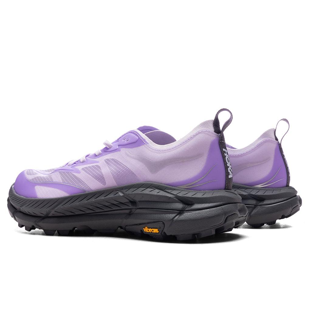 The U Mafate Speed 4 Lite in Starlight Glow/Aster Flower is designed for performance and sustainability. It features a breathable upper mesh made from recycled polyester, along with a recycled polyester tongue mesh and heel webbing. The dynamic tongue and vamp, combined with a bolstered heel collar, offer enhanced comfort and support. The shoe includes a rubber toe cap for added protection, a gusseted tongue construction to keep debris out, and the all-new lightweight, resilient foam with ProFly™+ construction for a responsive, cushioned ride. 73% recycled polyester upper mesh 100% recycled polyester tongue mesh 100% recycled polyester heel webbing Dynamic tongue and vamp Rubber toe cap for support and protection Bolstered heel collar construction All-new lightweight, resilient foam Gusseted tongue construction ProFly™+ construction Style No: 1168450-SLWS