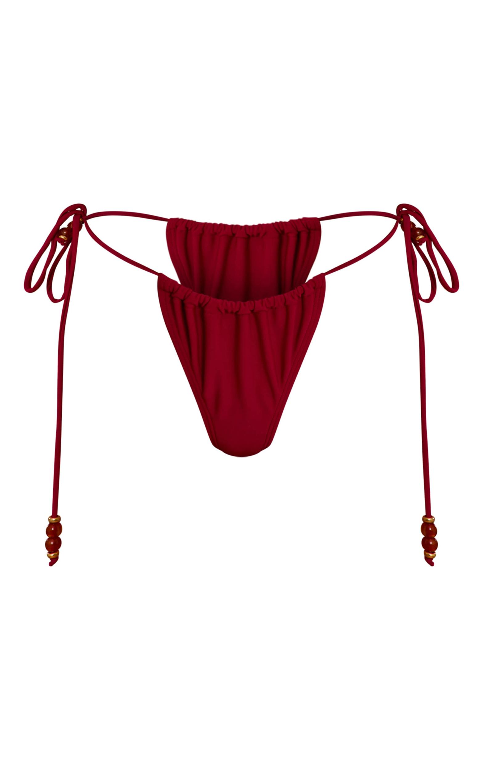 Turn up the heat with this magenta beaded tie side bikini bottom, designed to stand out by the pool. Brought to you in a magenta stretch swim fabric with beaded detailing and tie sides, they’re flattering and bold. Pair with the matching bikini top and sandals for a vibrant beach-ready look.Length approx 29cm/11.5inch (Based on sample size US 4)Model wears size UK 8/ EU 36/ AUS 8/ US 4Model Height - 5ft 8inchp]:!mb-4inch>Brand: PrettyLittleThingCategory: SwimwearProduct type: Tanga Bikini BottomColor: MagentaMaterial: SwimOccasion: Day