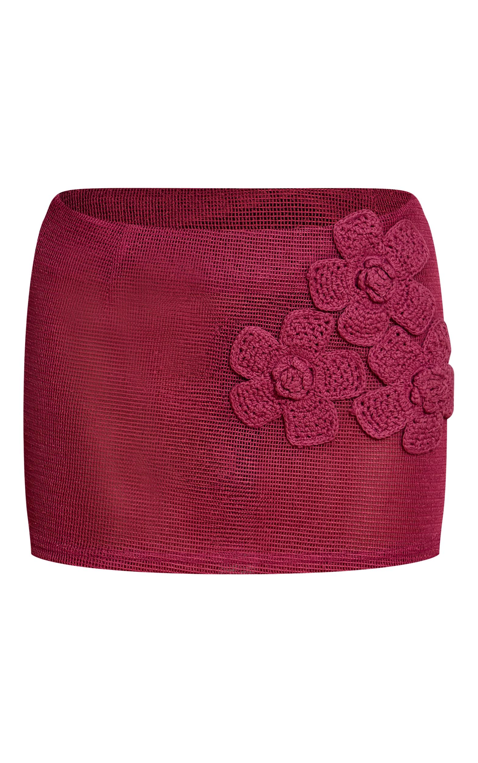 Get boho beach babe vibes in the magenta floral crochet embroidered beach skirt. Featuring intricate embroidery and a relaxed fit, it’s made for styling over your fave bikini — finish the look with gold bangles. Length may vary due to crochet knitLength approx 33cm/13inch (Based on sample size S)Model wears size SModel Height - 5ft 8inchp]:!mb-4inch>Brand: PrettyLittleThingCategory: SwimwearProduct type: Beach SkirtColor: MagentaMaterial: Crochet