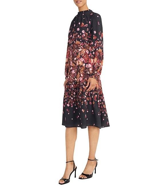 Maggy London Bubble Crepe Long Sleeve Floral Midi Dress