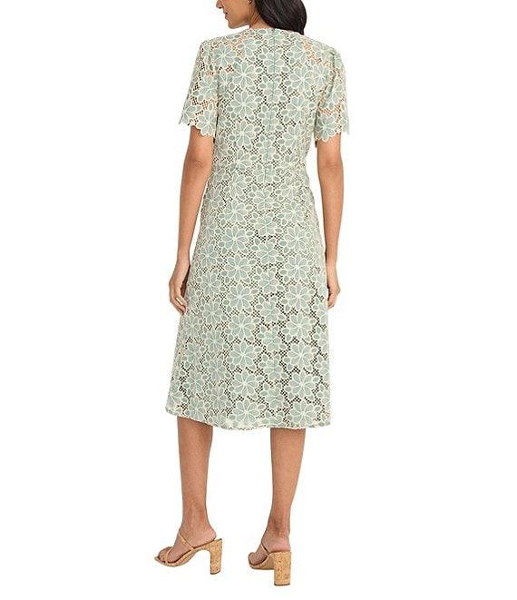 Maggy London Round Neck Flutter Sleeve Floral Lace A-Line Midi Dress