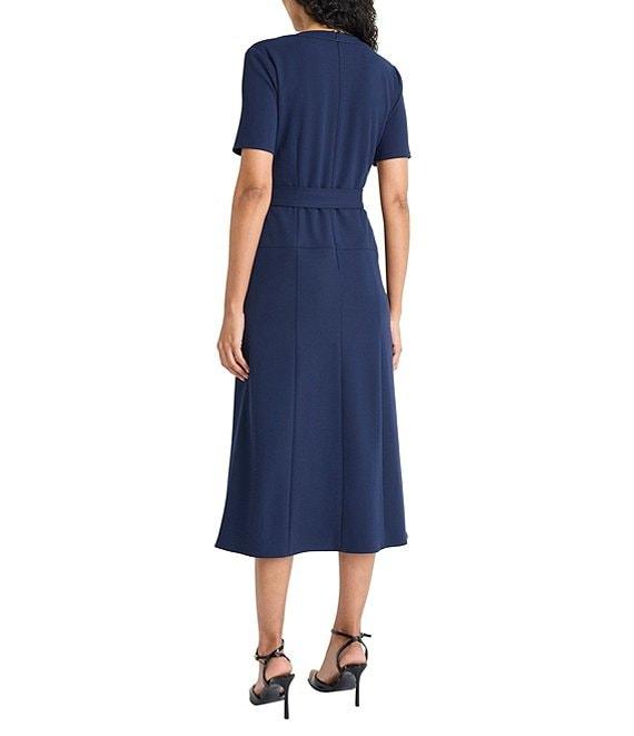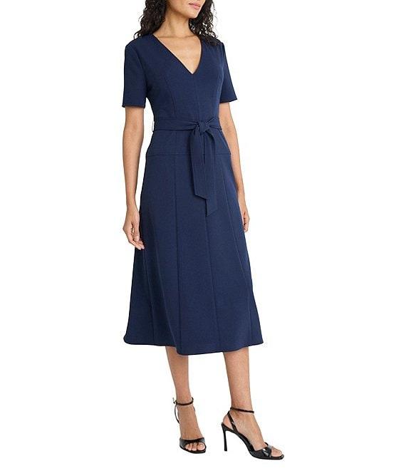Maggy London Scuba Crepe V-Neck Tie Belt Midi Dress