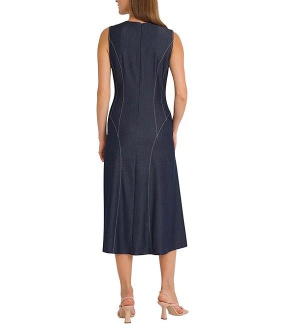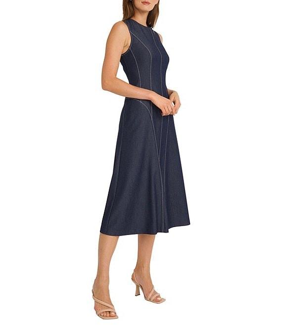 Maggy London Sleeveless A-Line Stretch Denim Midi Dress