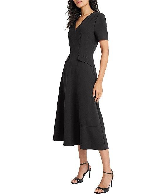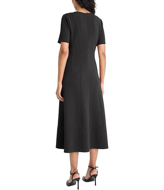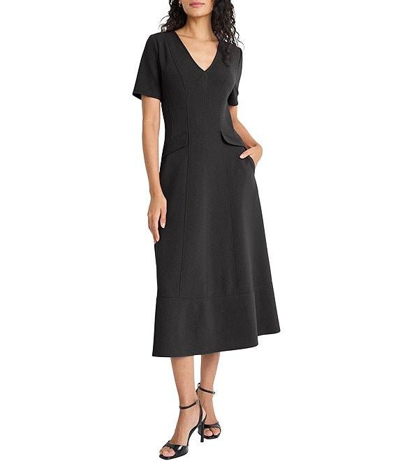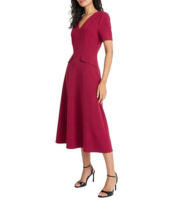 Maggy London Textured Knit V-Neck Short Sleeve Midi Dress