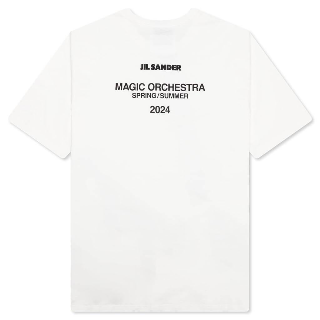 An addition to Jil Sander's eye for minimalism and creating balanced and easy everyday essentials, the Sheer T-Shirt is a simple short sleeve made with a screen-printed graphic on the back with text of 'Magic Orchestra', cut from cotton for a clean and polished tee. Crew neckline Straight hem Regular fit True to Size Style No: J22FV0111 JTN325 745
