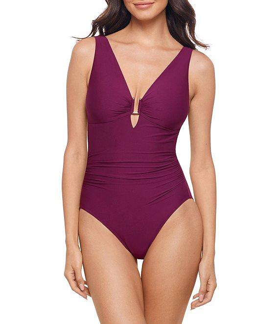 Magicsuit Marquis Kristi Solid Plunge Neck Draped V-Back One Piece Swimsuit