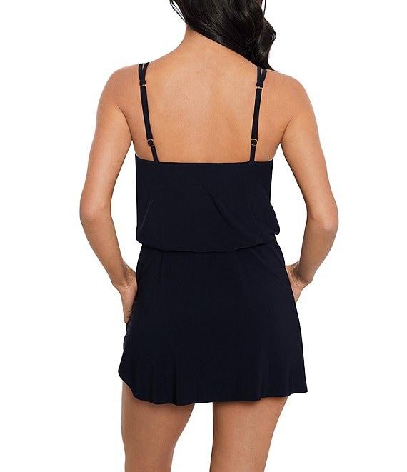 From Magicsuit, this one piece swimsuit features: Dress silhouette V-neckline Removable soft cups Adjustable tie front Provides all-over slimming and shaping Pockets Underneath sleek slimming one piece swimsuit Fully coverage Lined Pull-on construction Polyester/spandex/nylon Hand wash Imported.