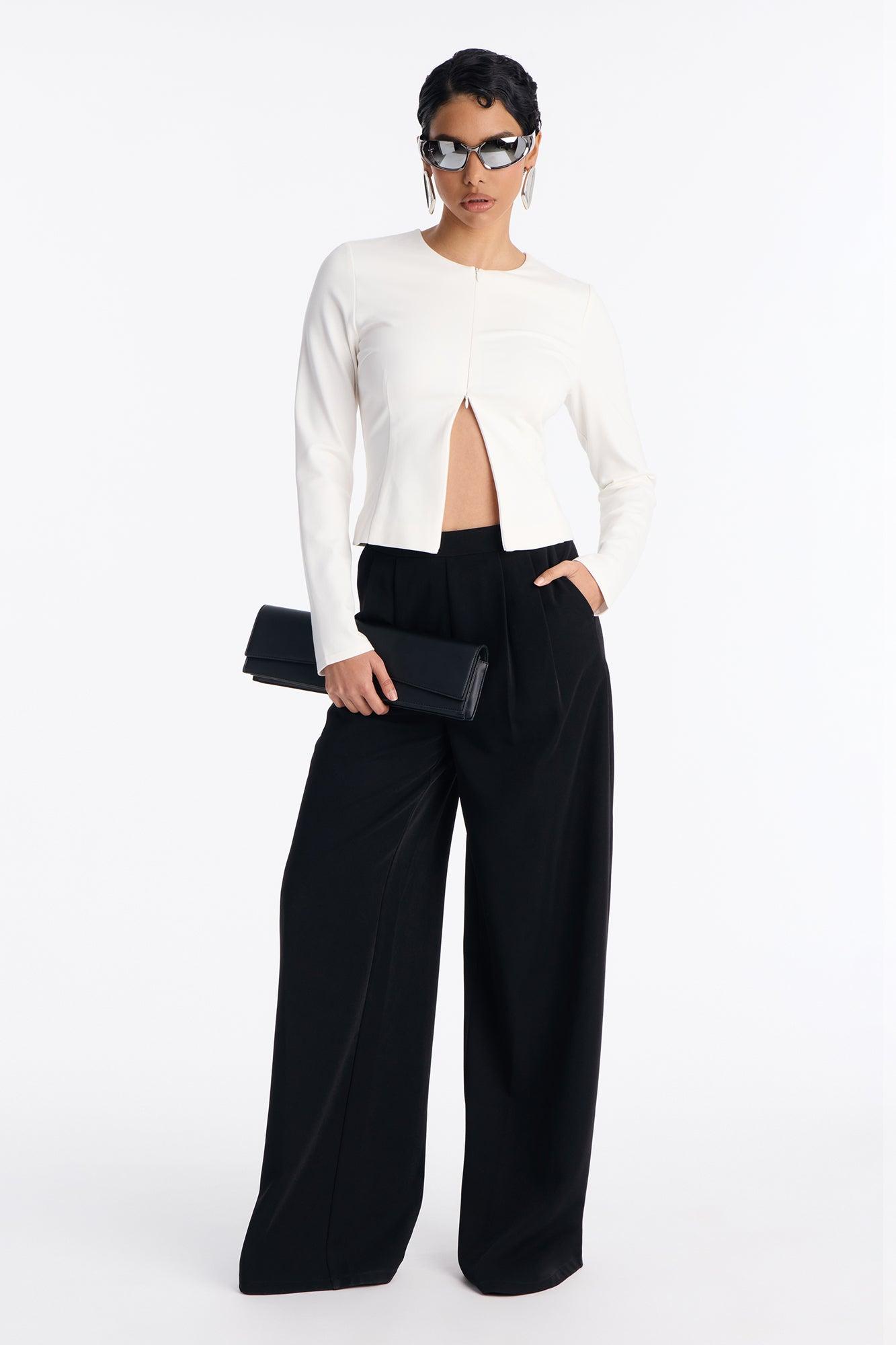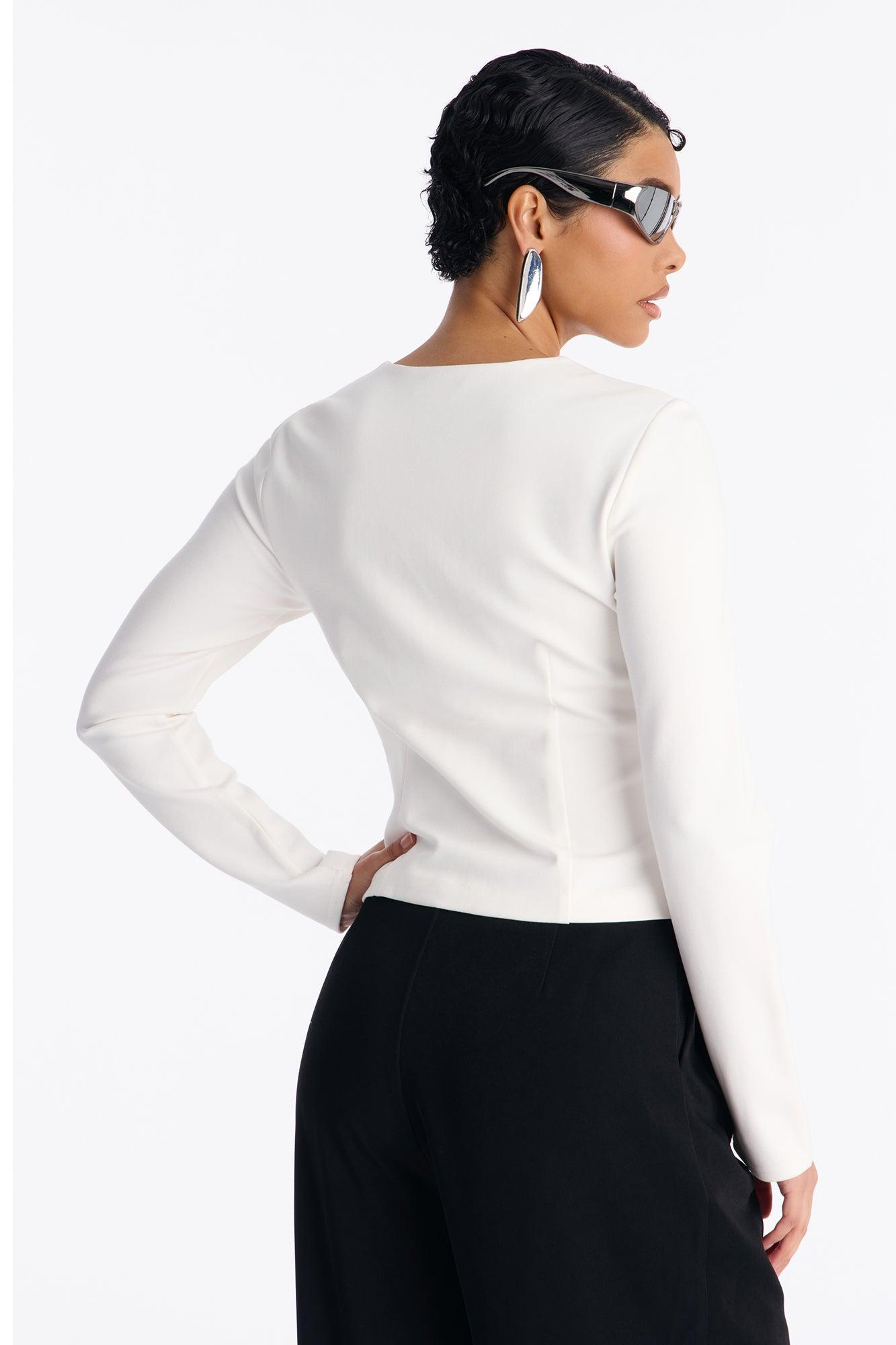 Available In Black, Coco, Taupe And White. Top Crew Neck Long Sleeve Zipper closure Stretch Self: 63% Rayon 32% Nylon 5% Spandex Lining: 100% Polyester Imported California Proposition 65WARNING: Cancer and Reproductive Harm - www.P65Warnings.ca.gov.
