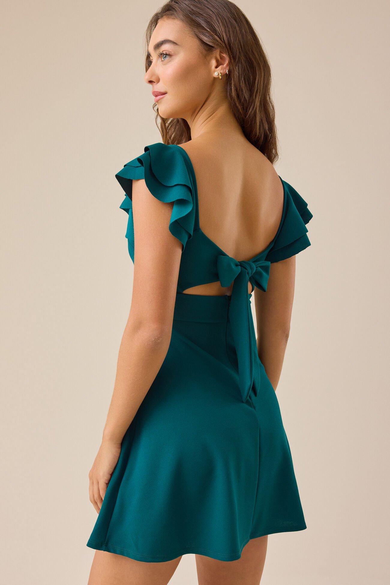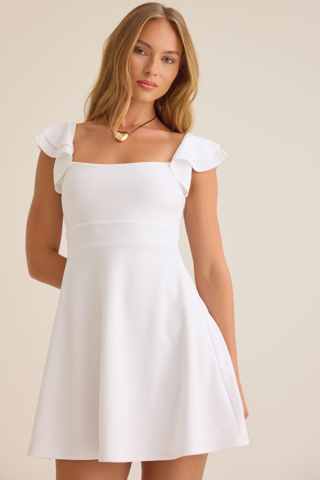 Stay effortlessly chic in this on-trend flowy mini dress. The flirty sleeves and captivating cross-over front create a look that's both playful and sophisticated. The fit and flare silhouette is incredibly flattering and perfect for any occasion.