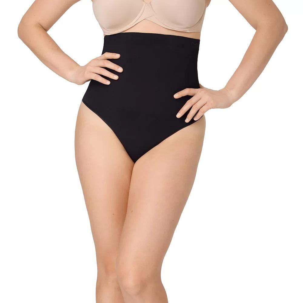 Maidenform® Seamless Shapewear delivers lightweight, buttery-soft comfort with a naturally flattering fit. This high-waist thong smooths tummy, hips, and back with firm control shaping zones while staying invisible under fitted skirts, pants, and more. Cool Comfort™ moisture-wicking technology keeps you cool all day, and a branded gripper at the waistband ensures the thong stays securely in place. Seamless, sleek, and supportive, this shapewear gives you a flawless look you’ll love. Maidenform. Seamlessly in control. Click on this INTIMATES & SLEEPWEAR GUIDE to find the perfect fit and more! - https://www.kohls.com/feature/womens-sleepwear-and-intimates-guide.jsp. FEATURES: Seamless design eliminates visible lines under clothing, Cool Comfort™ fabric wicks moisture for all-day freshness, Lightweight, buttery-soft material shapes comfortably without irritating seams, Graduated knit-in zones provide firm control for tummy, hips, and back, Non-compressive booty shapes naturally without flattening, Branded waistband gripper keeps the garment in place, Thong back ensures no visible panty lines, Anti-microbial gusset helps control odor and keep you feeling fresh. FIT & SIZING: Super high rise sits on the natural waistline. FABRIC & CARE: Nylon, spandex, Machine wash delicate and line dry, Imported. Size: Medium. Color: Black. Gender: female. Age Group: adult. Material: NYLON BLEND.