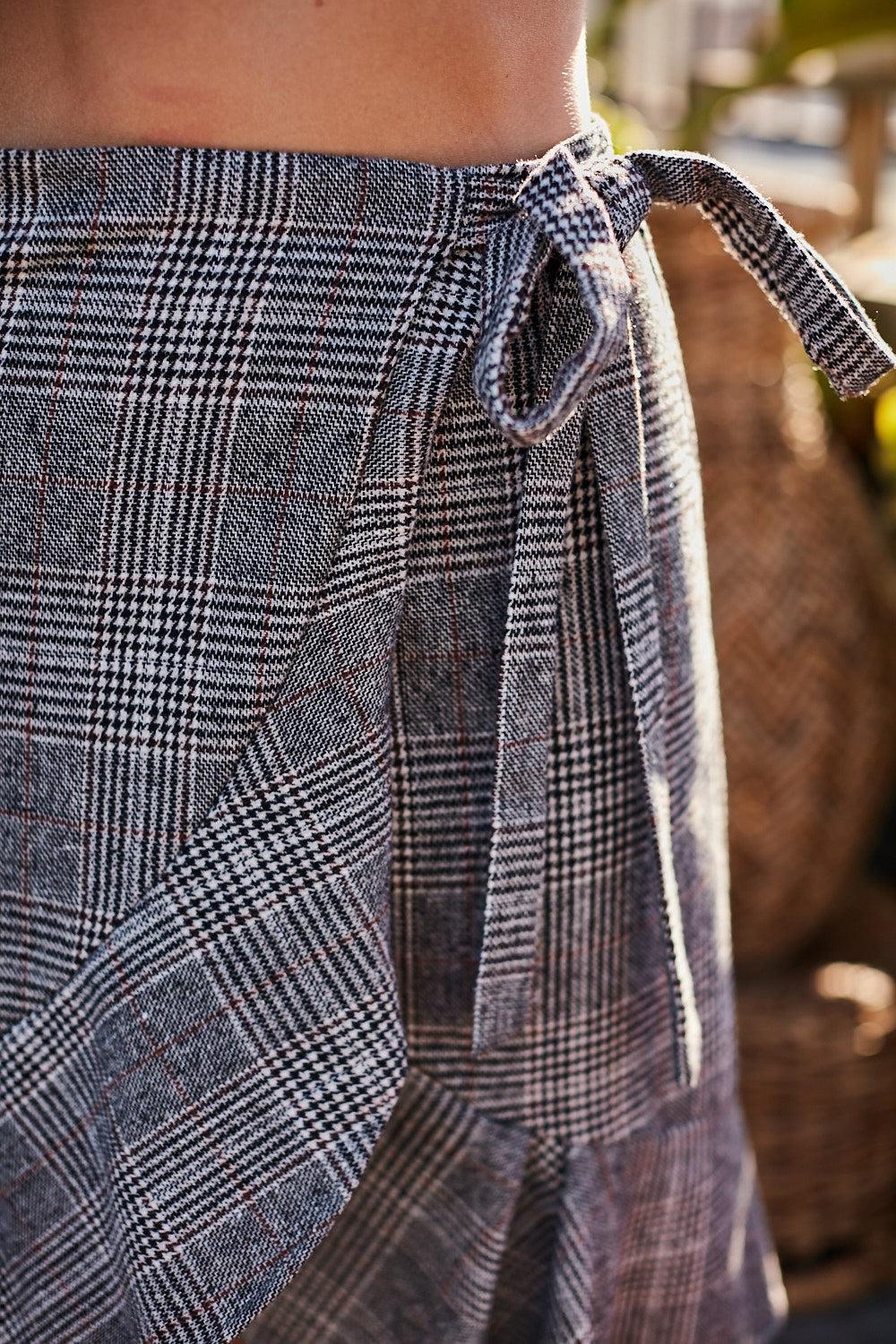 The Ruffle Rhapsody: You're wardrobe's leading lady. This playful midi skirt cascades with layered ruffles, creating a flirty silhouette that moves with you. The easy-tie overwrap flatters your waist and adds a touch of effortless style. Strike a pose in this scene-stealing statement piece.