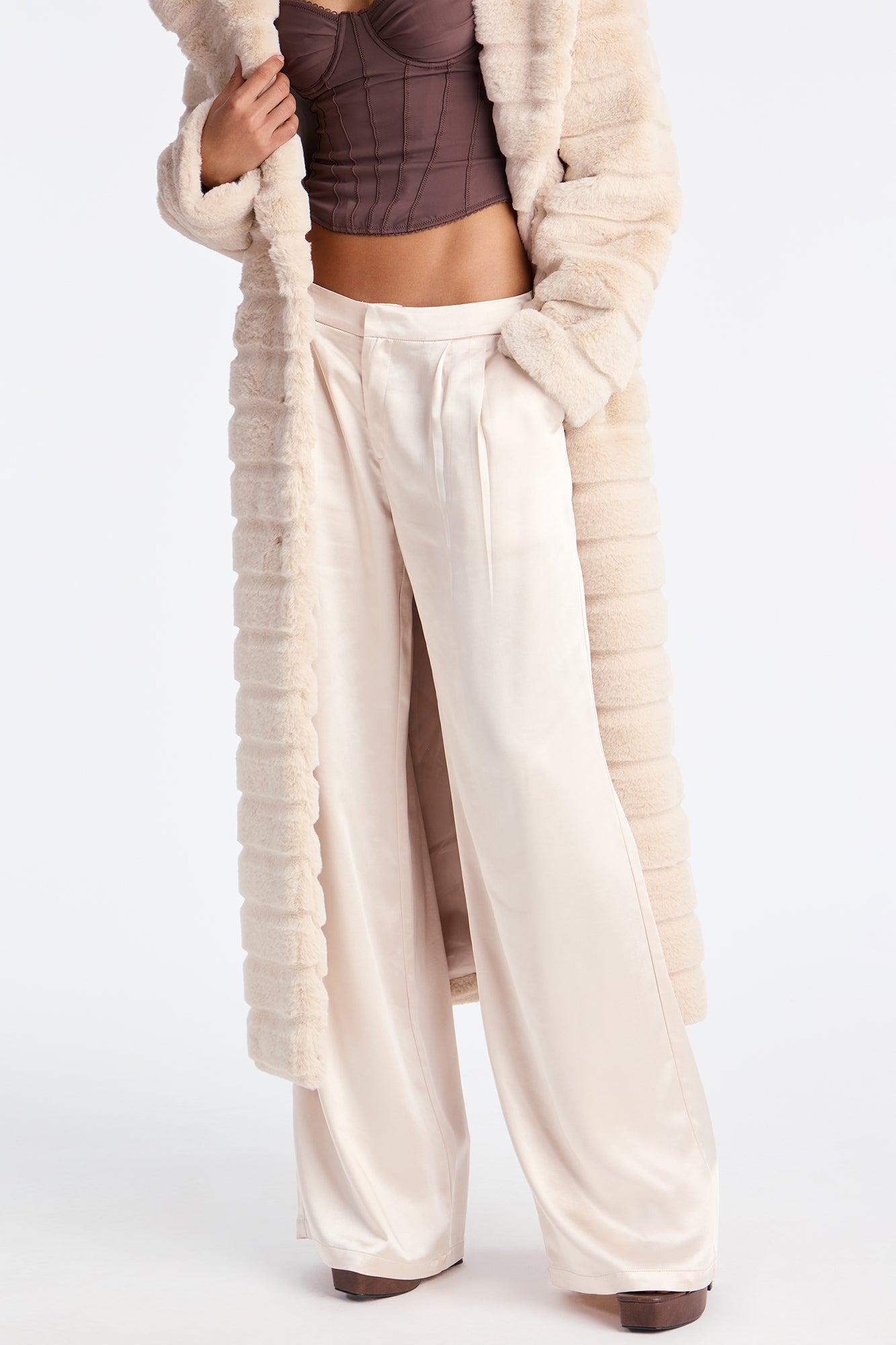Main Topic Low Rise Wide Leg Satin Pant 33 - Pearl Female