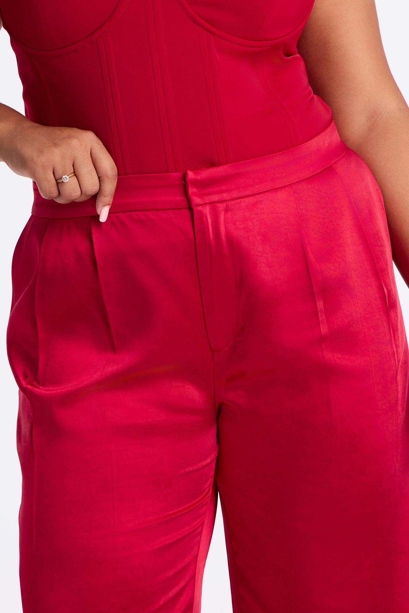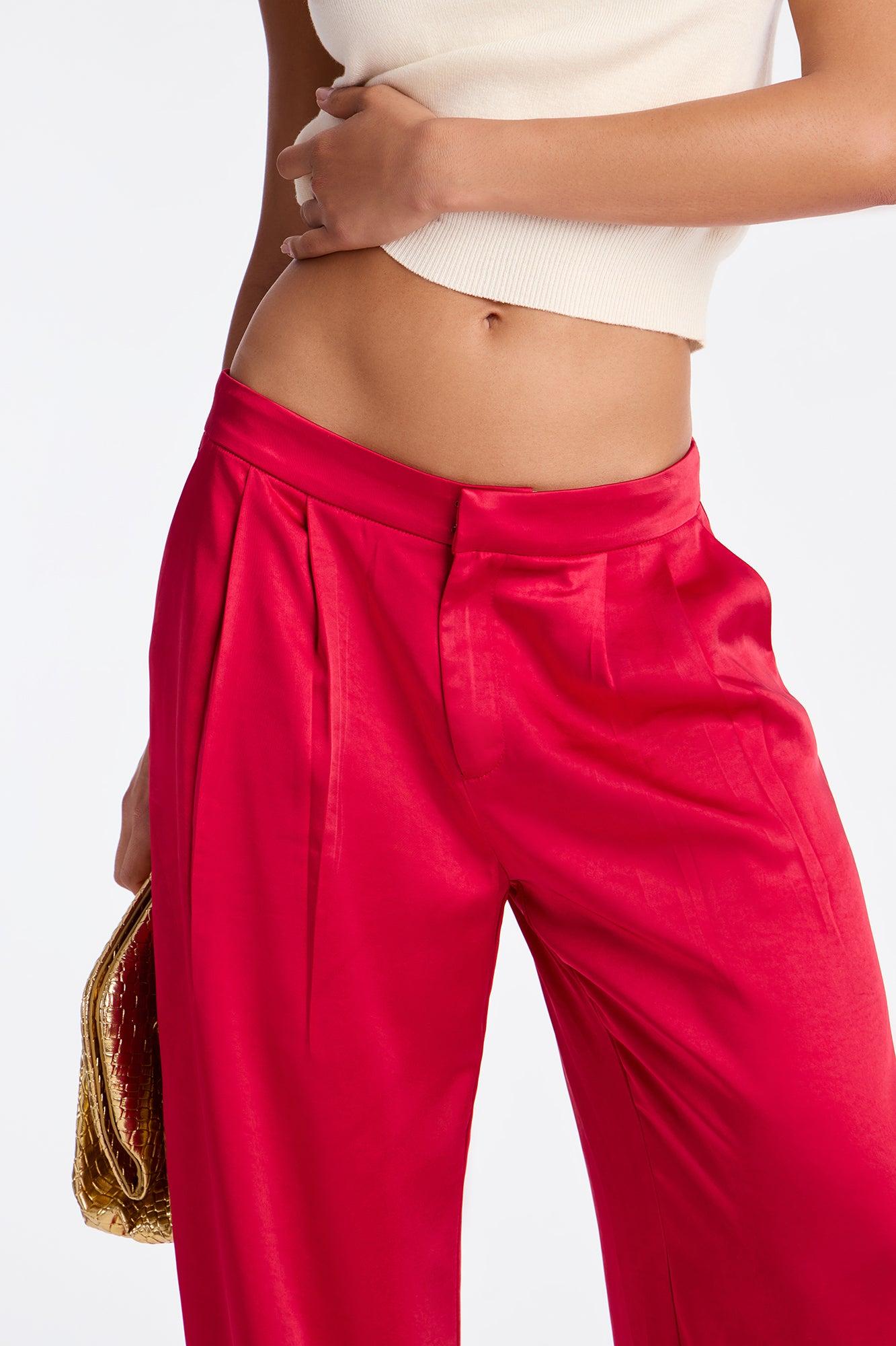 Main Topic Low Rise Wide Leg Satin Pant 33 - Red Female