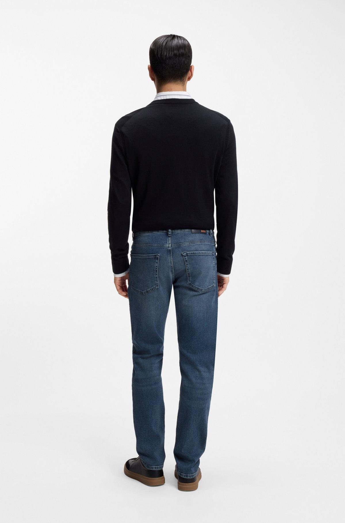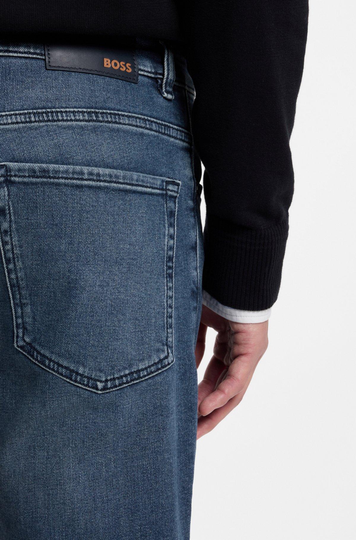 Regular-rise jeans by BOSS Menswear cut to a straight fit with a tapered leg in mid-blue comfort-stretch denim featuring a subtle wash.