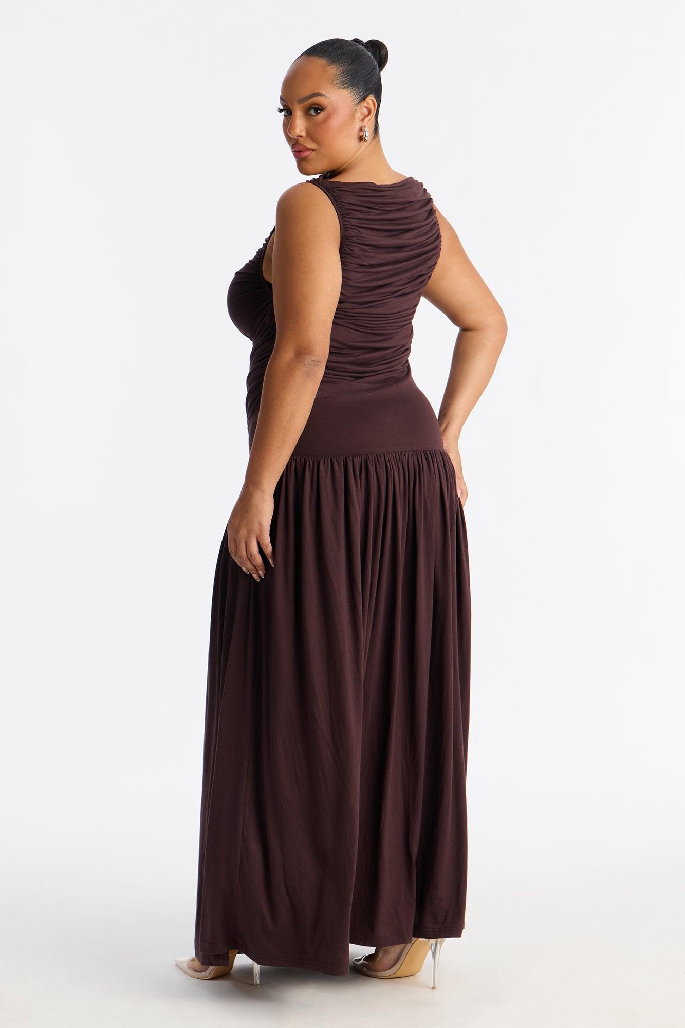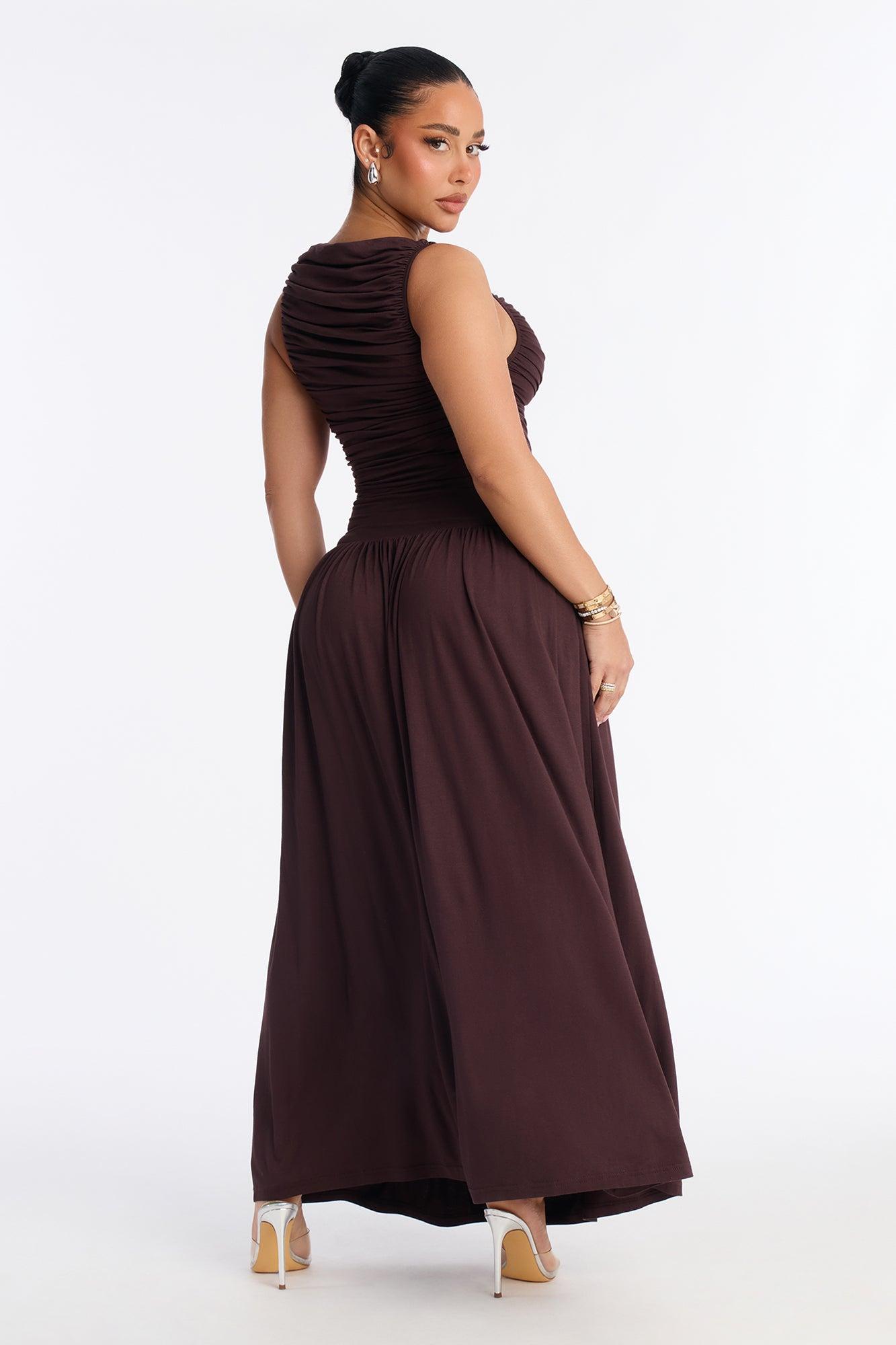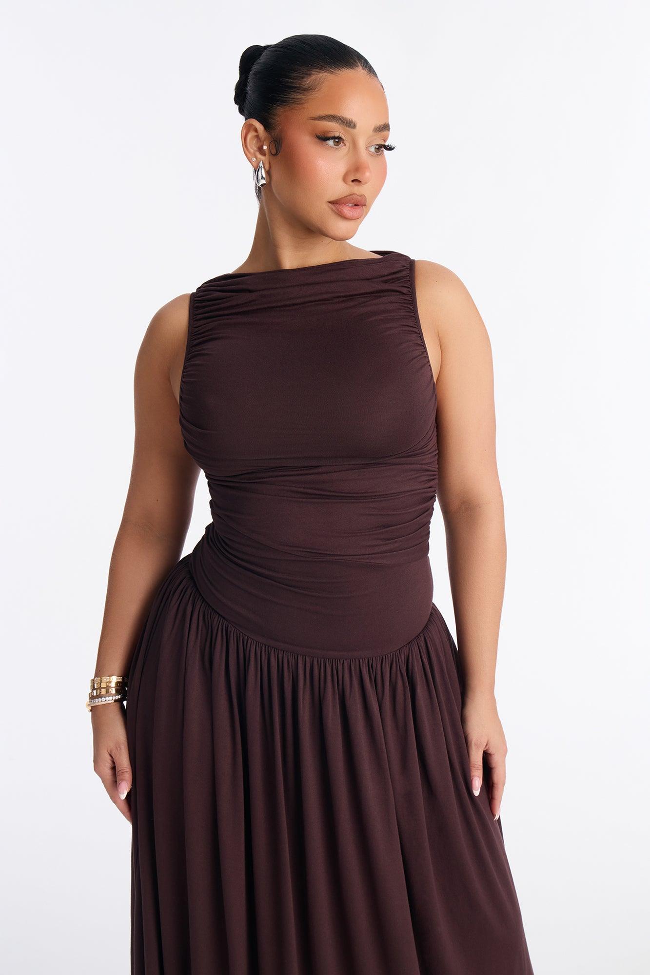 Maisie Ruched Drop Waist Maxi Dress - Chocolate Female
