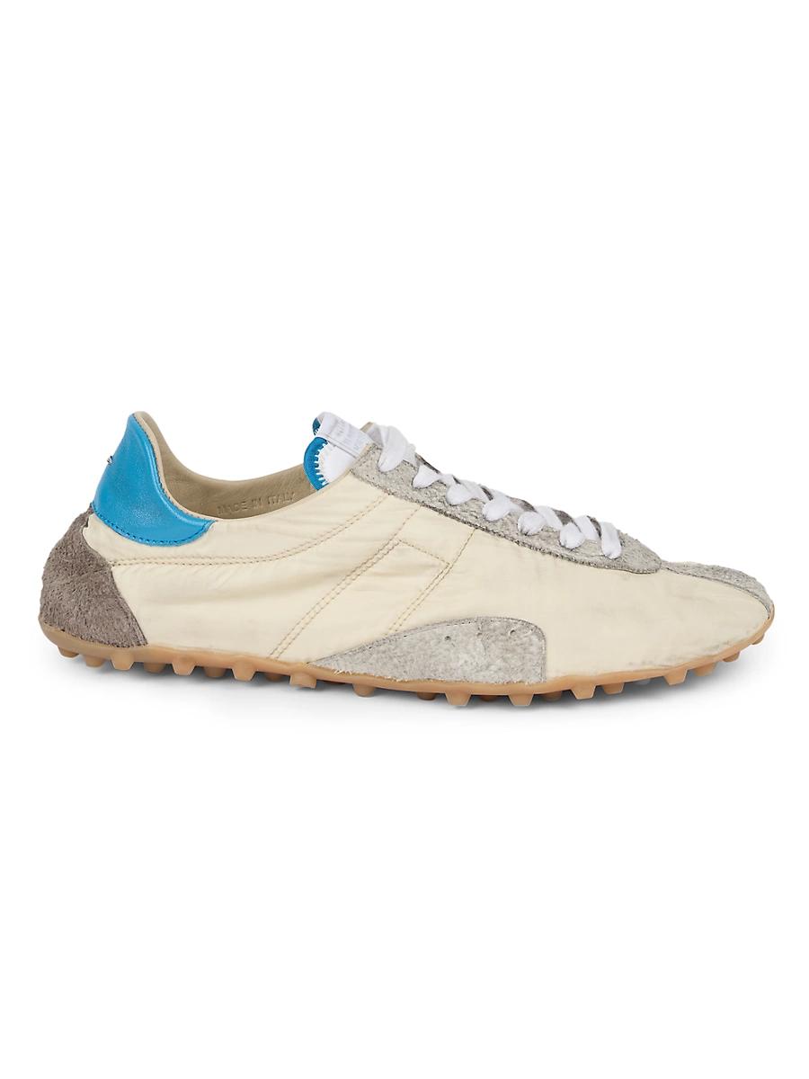 Exemplifying Maison Margielas penchant for innovative design, these Sprinters low-top sneakers are crafted of a blend of nylon, leather, and hairy suede, treated for a vintage aesthetic. This pair is completed with a robust rubber sole, ensuring durability and comfort. Round toe Lace-up style Nylon/leather/suede upper Polyester/leather lining Rubber sole Made in Italy SIZE Platform: about 1 (25mm). Mens Shoes - Designer Shoes > Maison Margiela > Saks Fifth Avenue > Barneys. Maison Margiela. Color: Lemon White Grey. Size: 7.