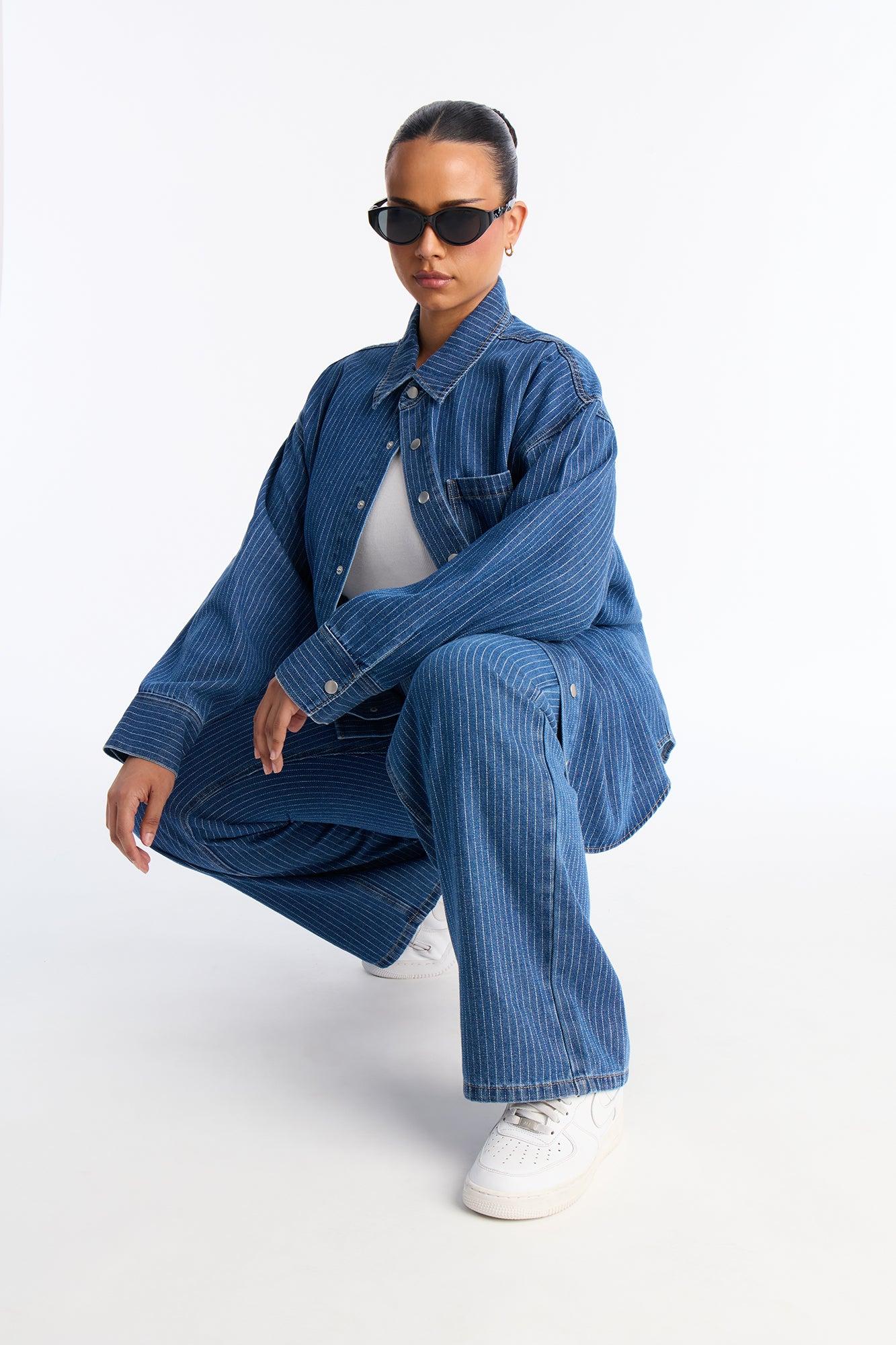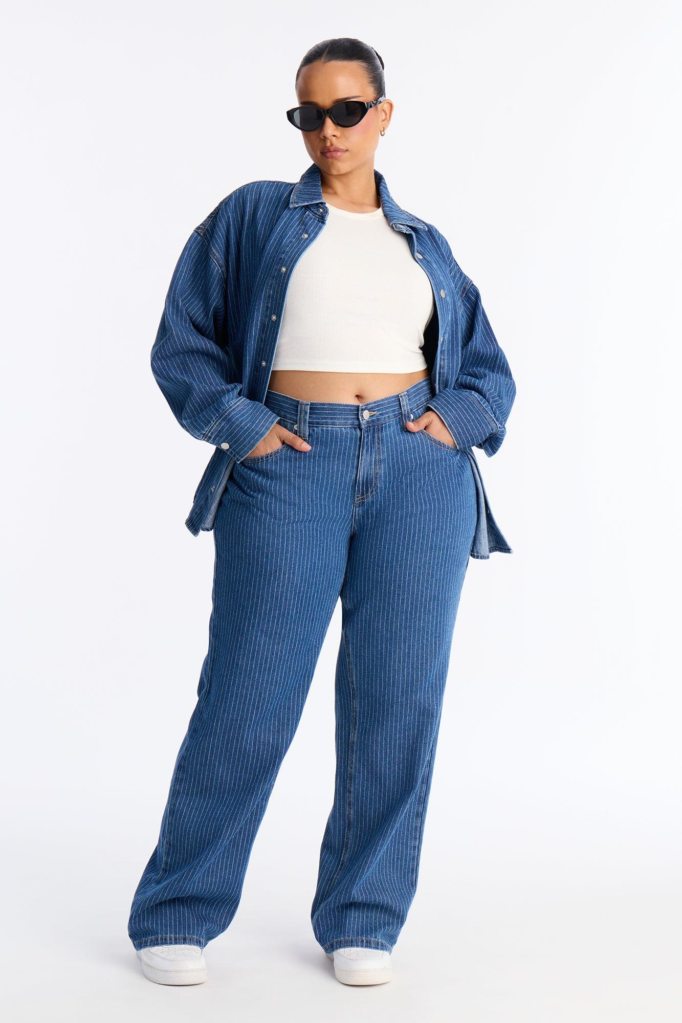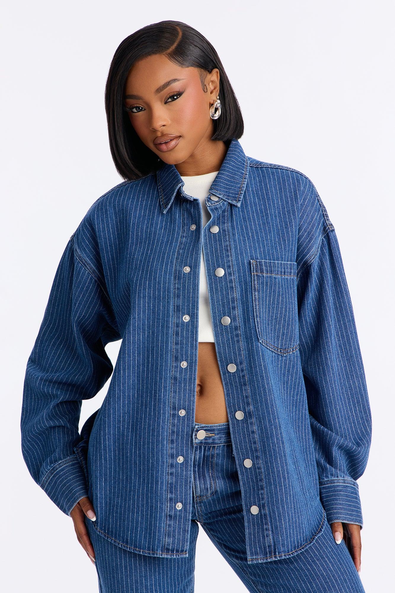 Available In Denim. 2 Piece Ensemble Collar Long Sleeve Shirt And Straight Leg Pant Set Non-Stretch Snap Button Top Closure Front Button And Zipper Pant Closure 33.5" Inseam Disclaimer: Due To The Specialized Wash, Each Garment Is Unique. Self: 79% Cotton 15% Polyester 6% Rayon Imported