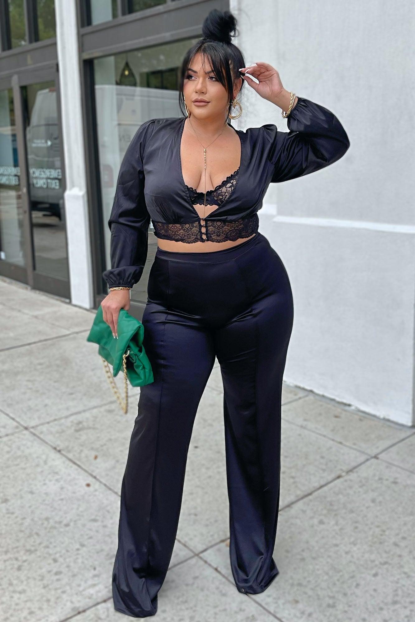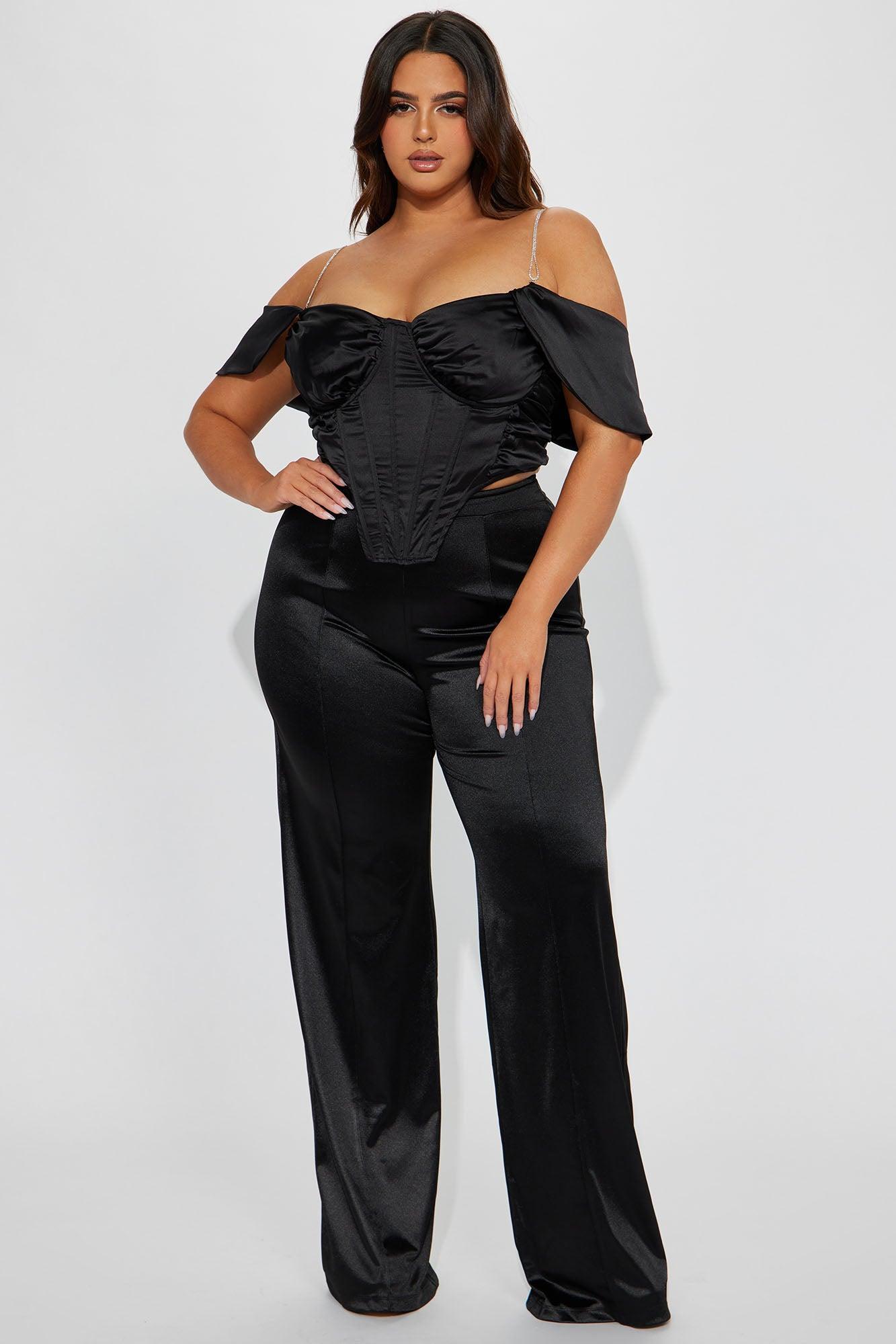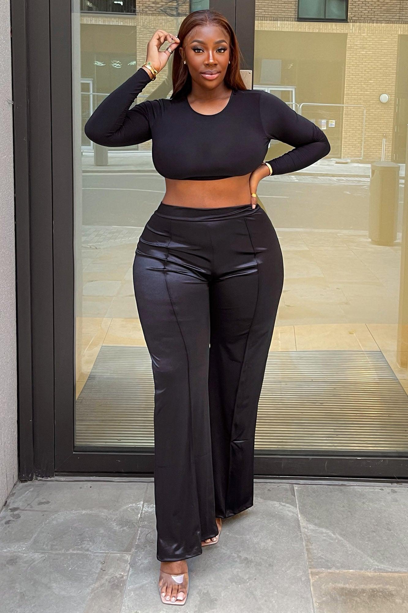 Make A Wish Stretch Satin Pants - Black