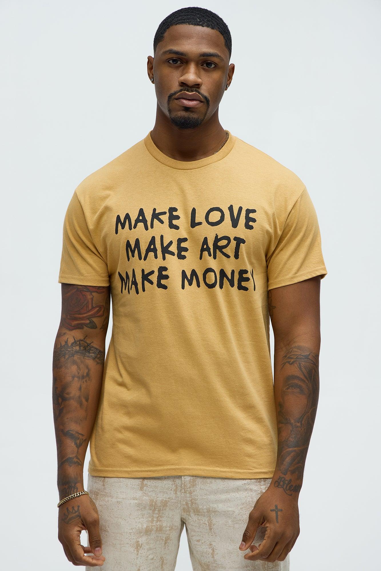Make Actions Short Sleeve Crew Neck T shirt - Mustard