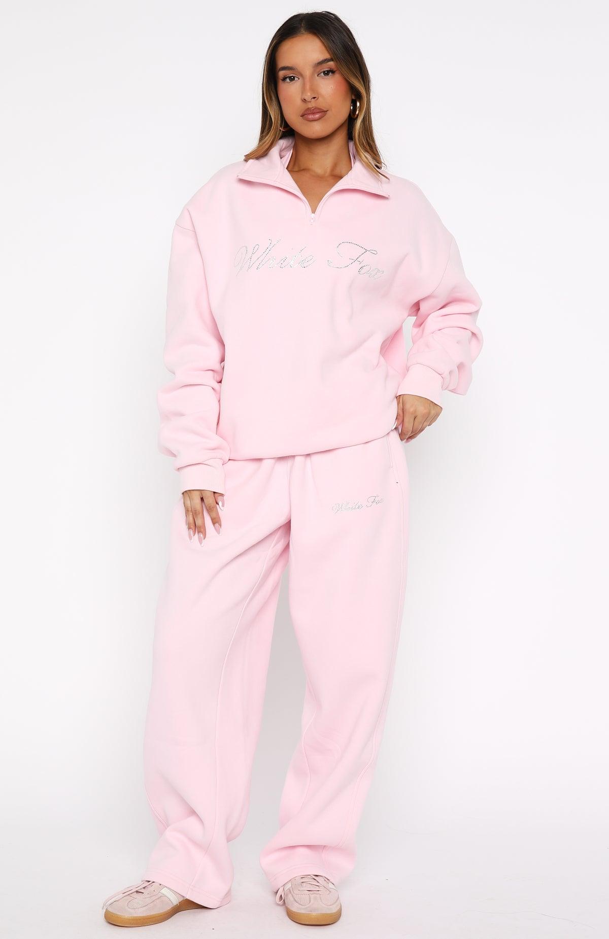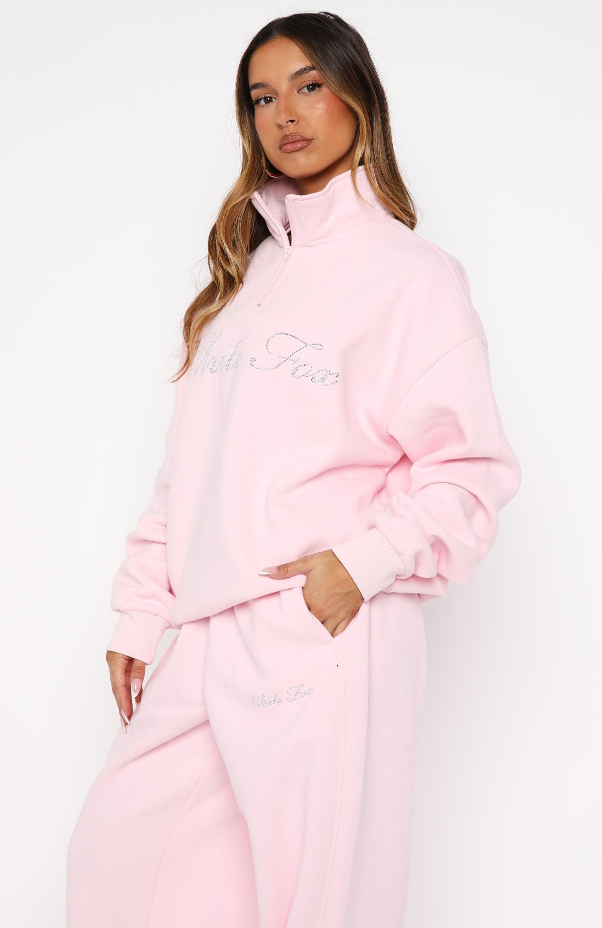 Bring back the 2000’s, baby! The Make It Or Break It Quarter Zip Sweater Pink features long sleeves, an oversized silhouette, and a high collar with a quarter-zip front. Finished with ribbed cuffs and a firm ribbed hem band for a secure fit, it’s topped off with cursive White Fox text in sparkling diamante. Inside, a cosy fleece interior keeps you warm. Style it with the matching Make It Or Break It Wide Leg Sweatpant for a complete coordinated look. - Long Sleeves - Oversized Fit - Quarter Zip Front - High Collar - Ribbed Cuffs - Firm Ribbed Hem Band