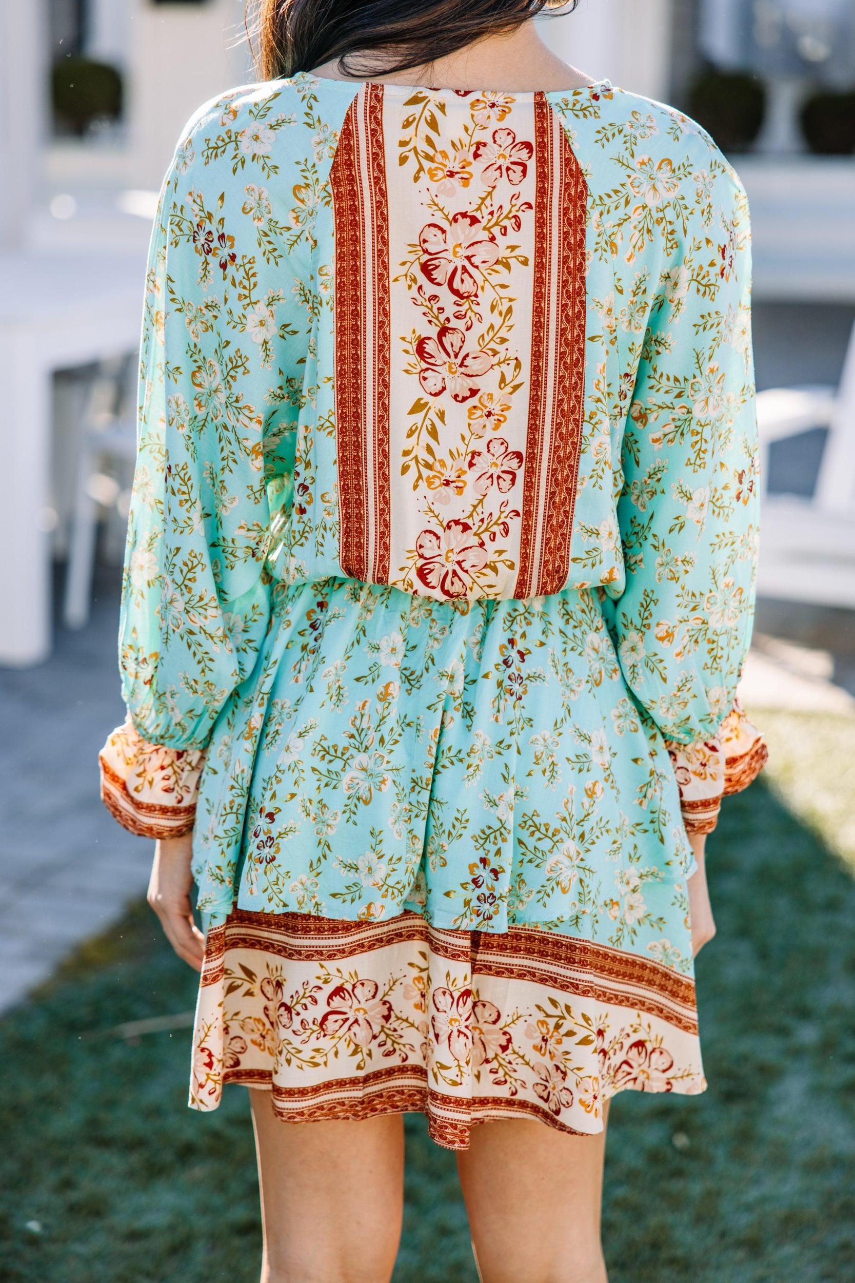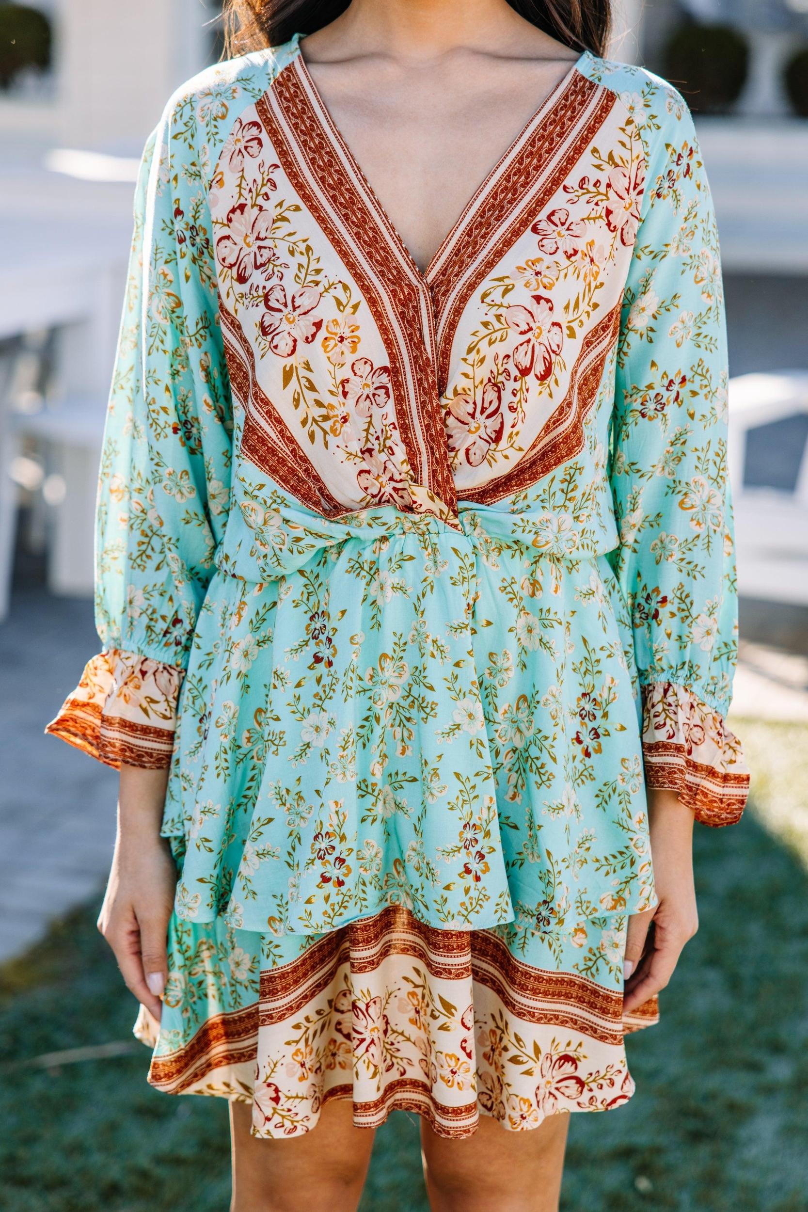 This dress is giving us all the best boho vibes! This mix of floral prints is so pretty and we love those fabulous colors! This dress going to be such a hit! You can easily throw this beauty on with heels or wedges in the spring/summer or with booties for fall!! This dress features long sleeves, a surplice neckline, elastic waist, ruffles, and a mix of floral prints. Material has no amount of stretch.Cindy is wearing the small.