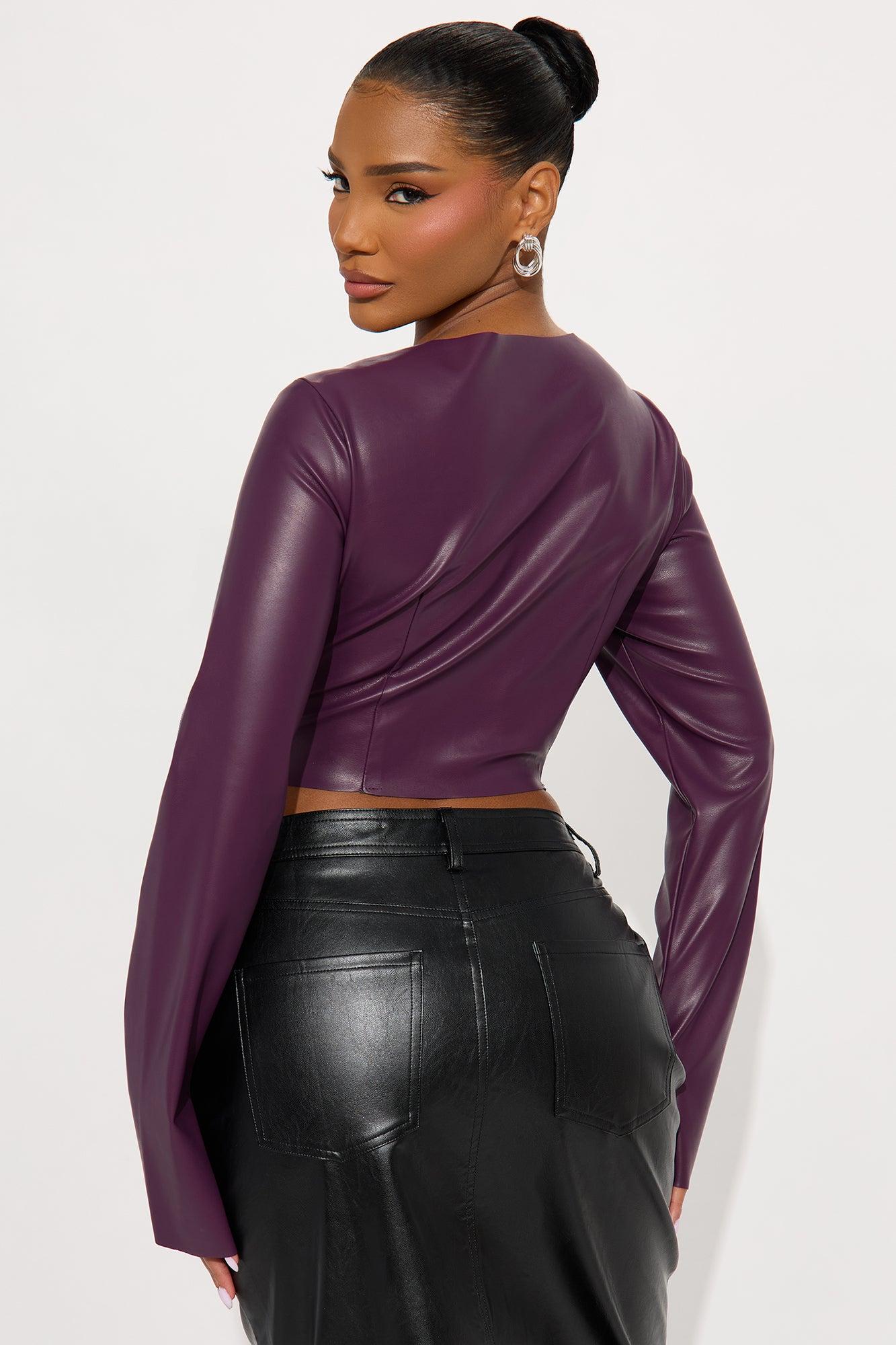 Make Your Way Faux Leather Flyaway Top - Eggplant Female