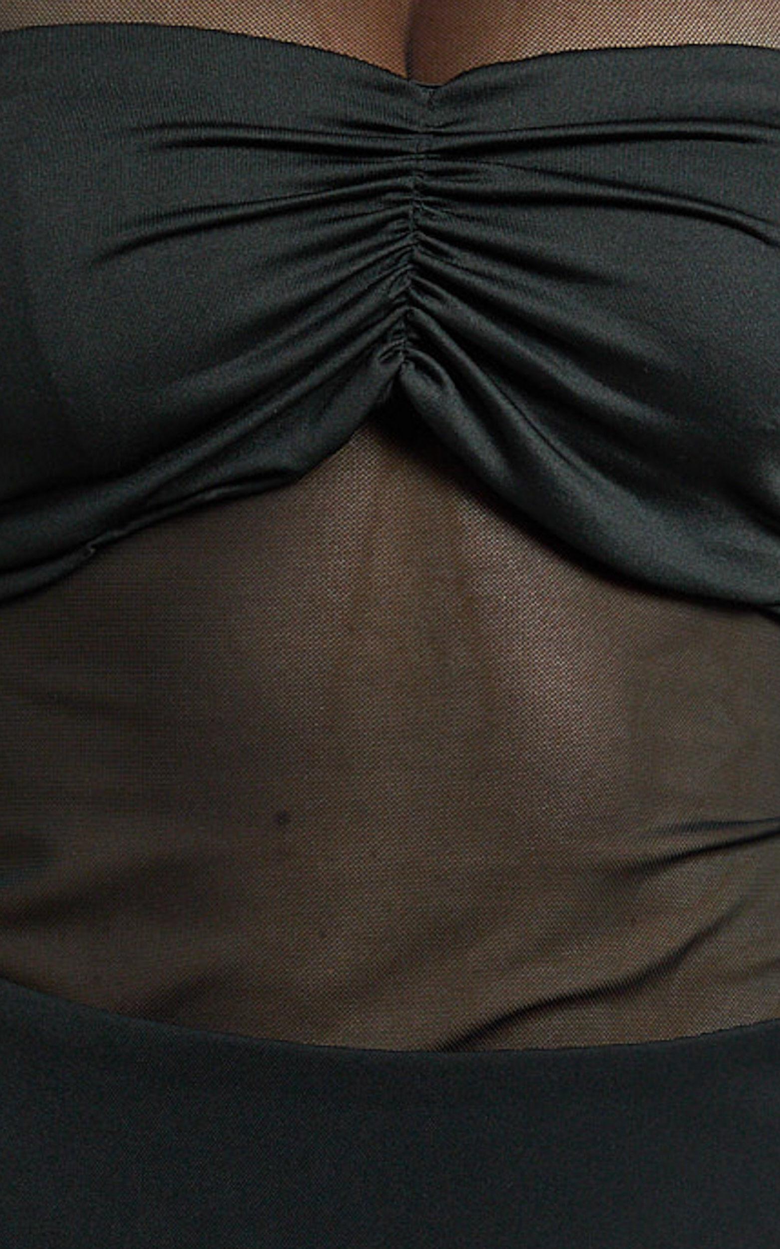Product Details:Mesh polyester fabricInner lining detailPull on styleBoat necklineSleeveless designStandard lengthPerfect for partiesSize and FitSize S / 8 length: 55.5cm / 21.85inMaterial and CareMain Fabric: 95% Polyester, 5% Spandex Lining: 92% Polyester, 8% SpandexHigh Stretch