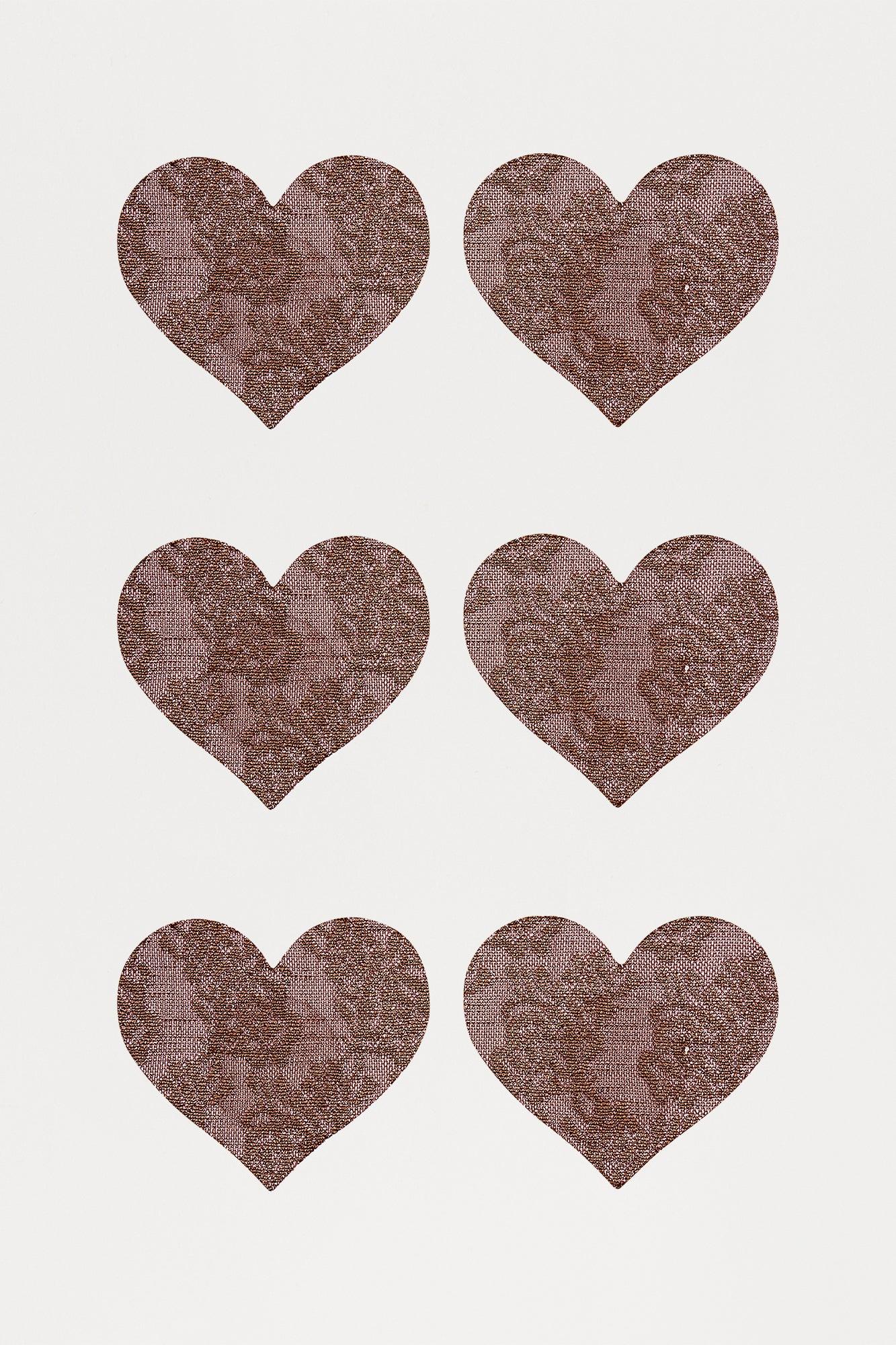 Available In Brown And Nude. 3 Pairs Of Heart Shaped Pasties Perfect for Dresses, Bodysuits, Jumpsuits and More! Adhesive Pasties Single Use Final Sale Disclaimer: Not Recommended For People With Sensitive Skin. 100% Polyester Imported California Proposition 65WARNING: Cancer and Reproductive Harm - www.P65Warnings.ca.gov.