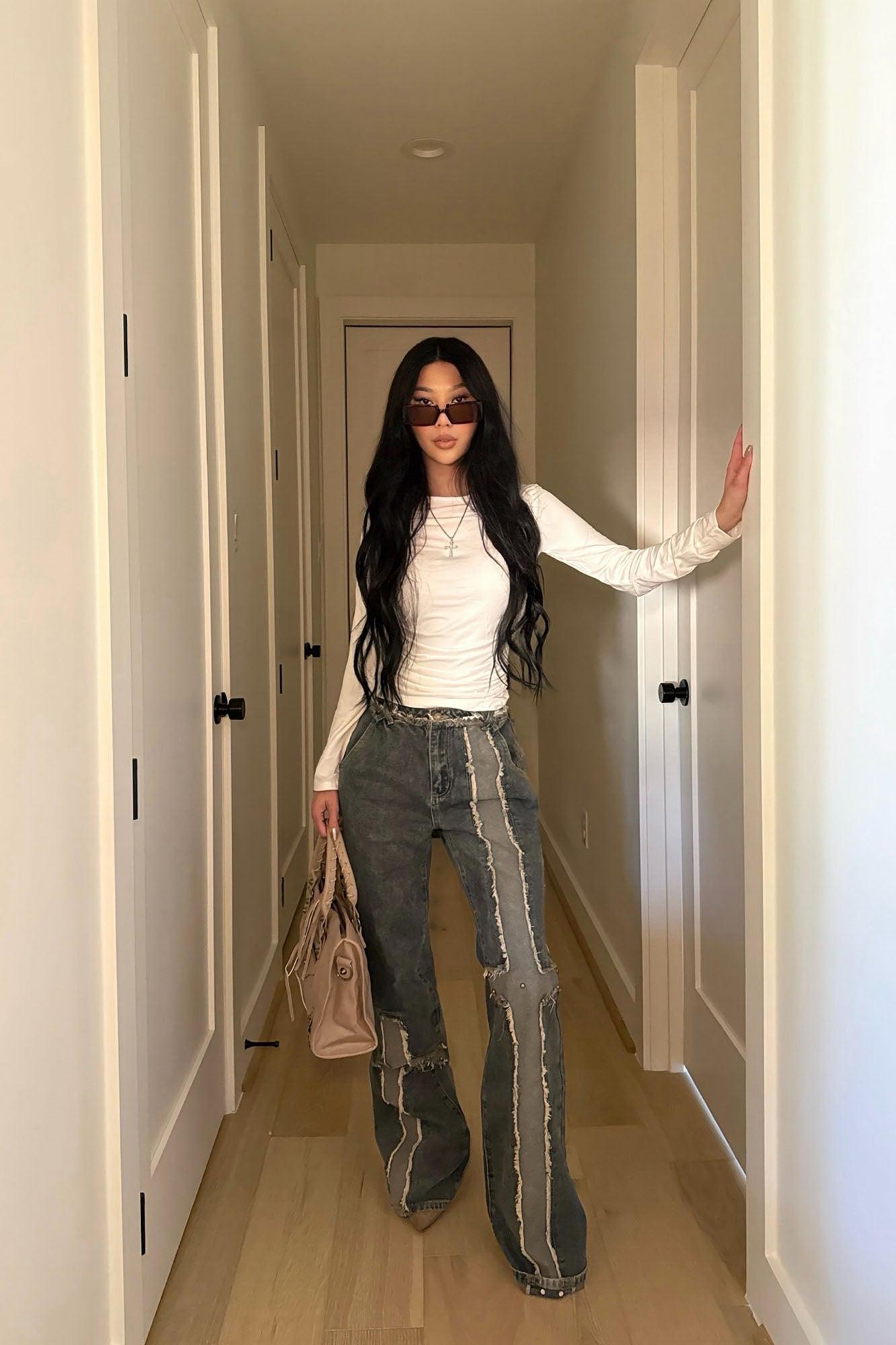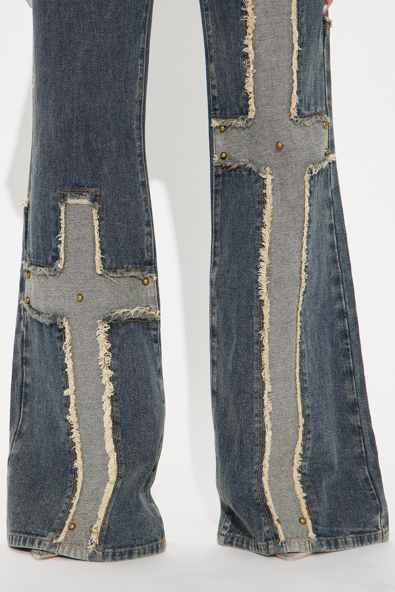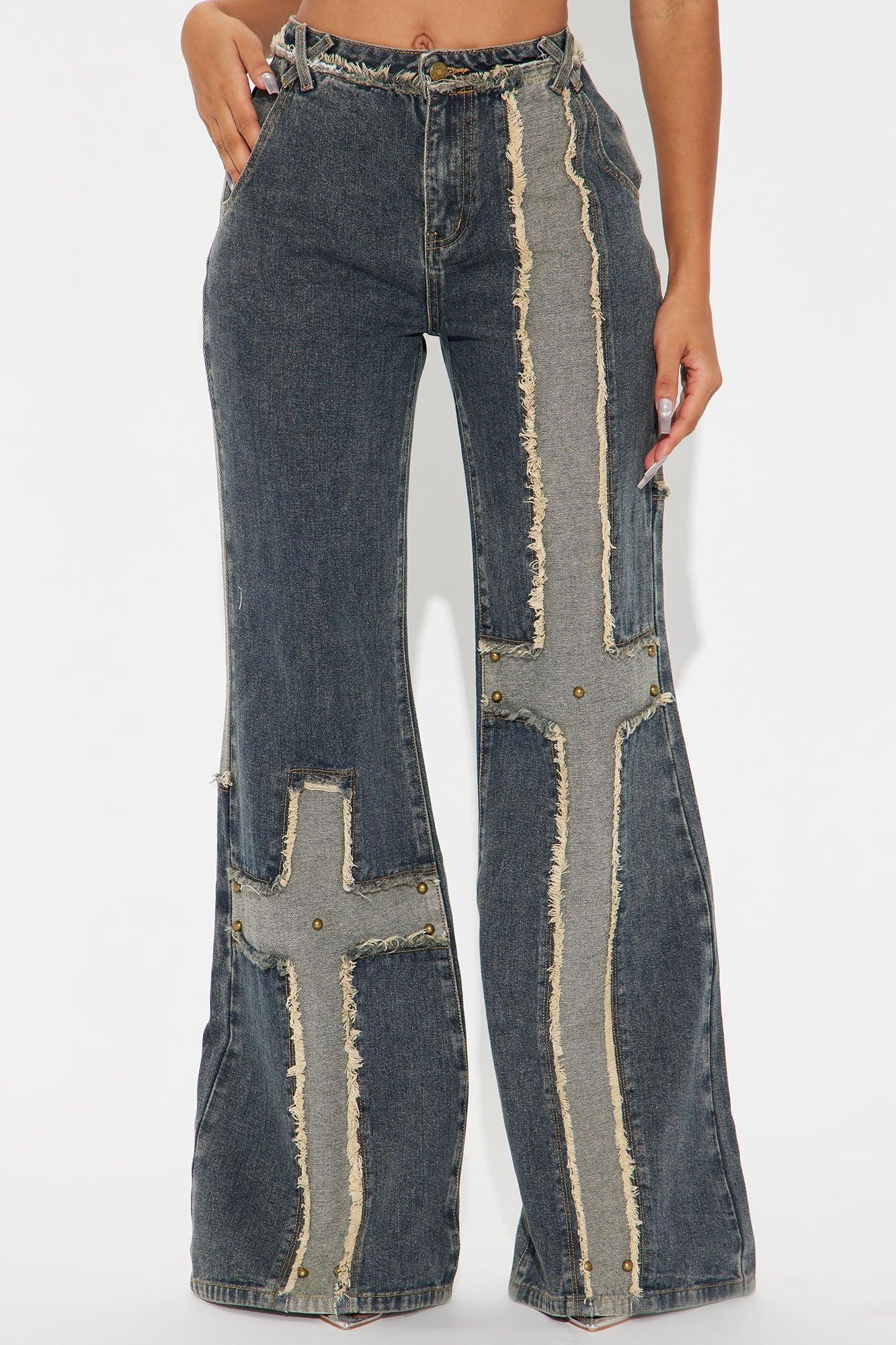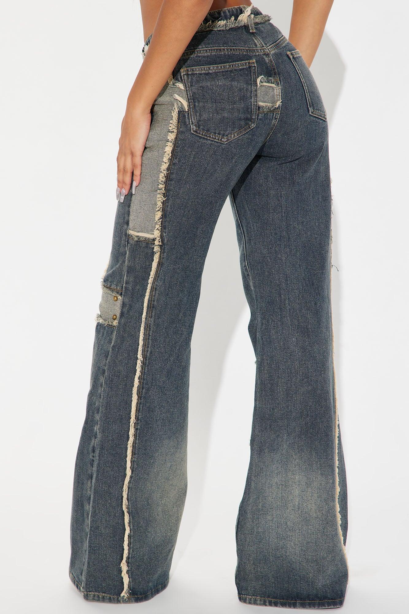 Available In Grey. Straight Leg Jean Pockets Seaming Two Tone Detail Fray Waistband Embellished 10.5" High Rise 32" Inseam Non Stretch Disclaimer: Due To The Specialized Wash Process, Each Garment Is Unique. 80% Cotton 20% Polyester Imported