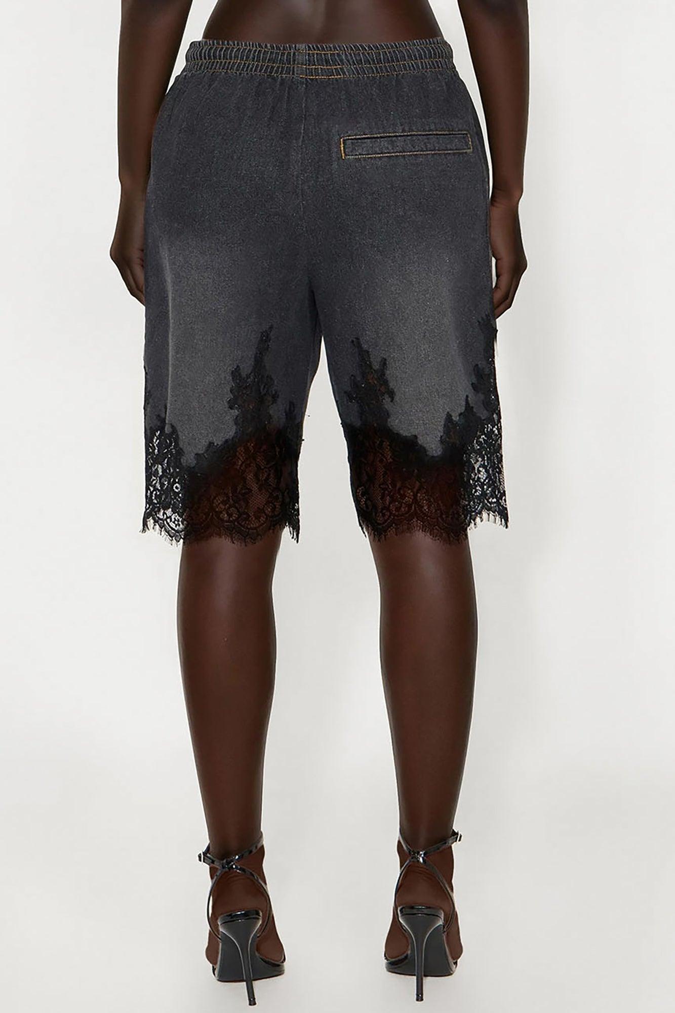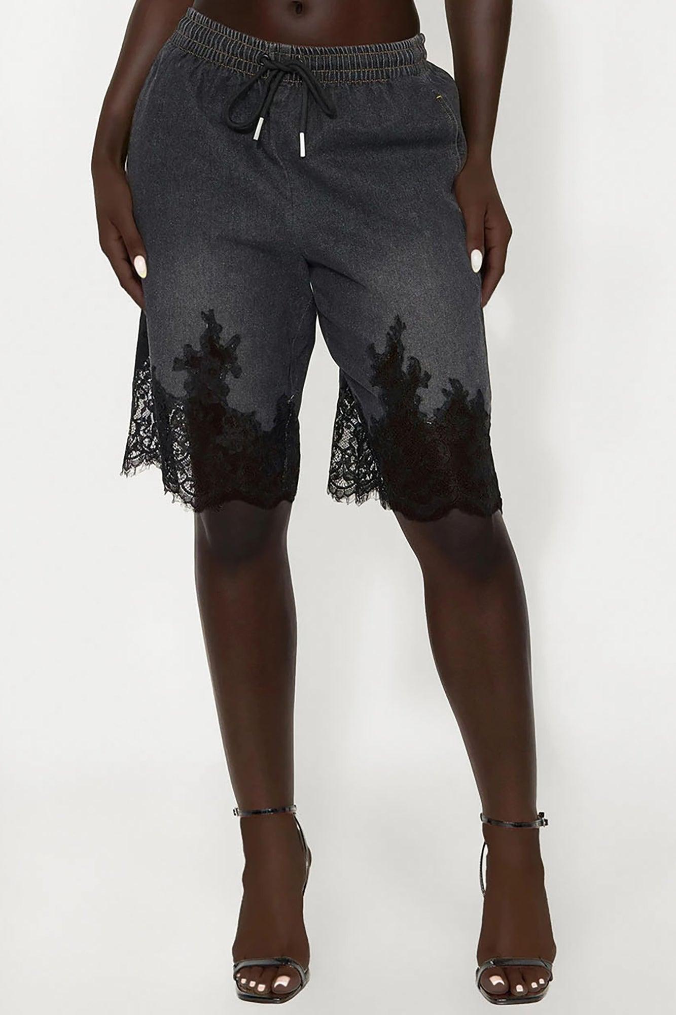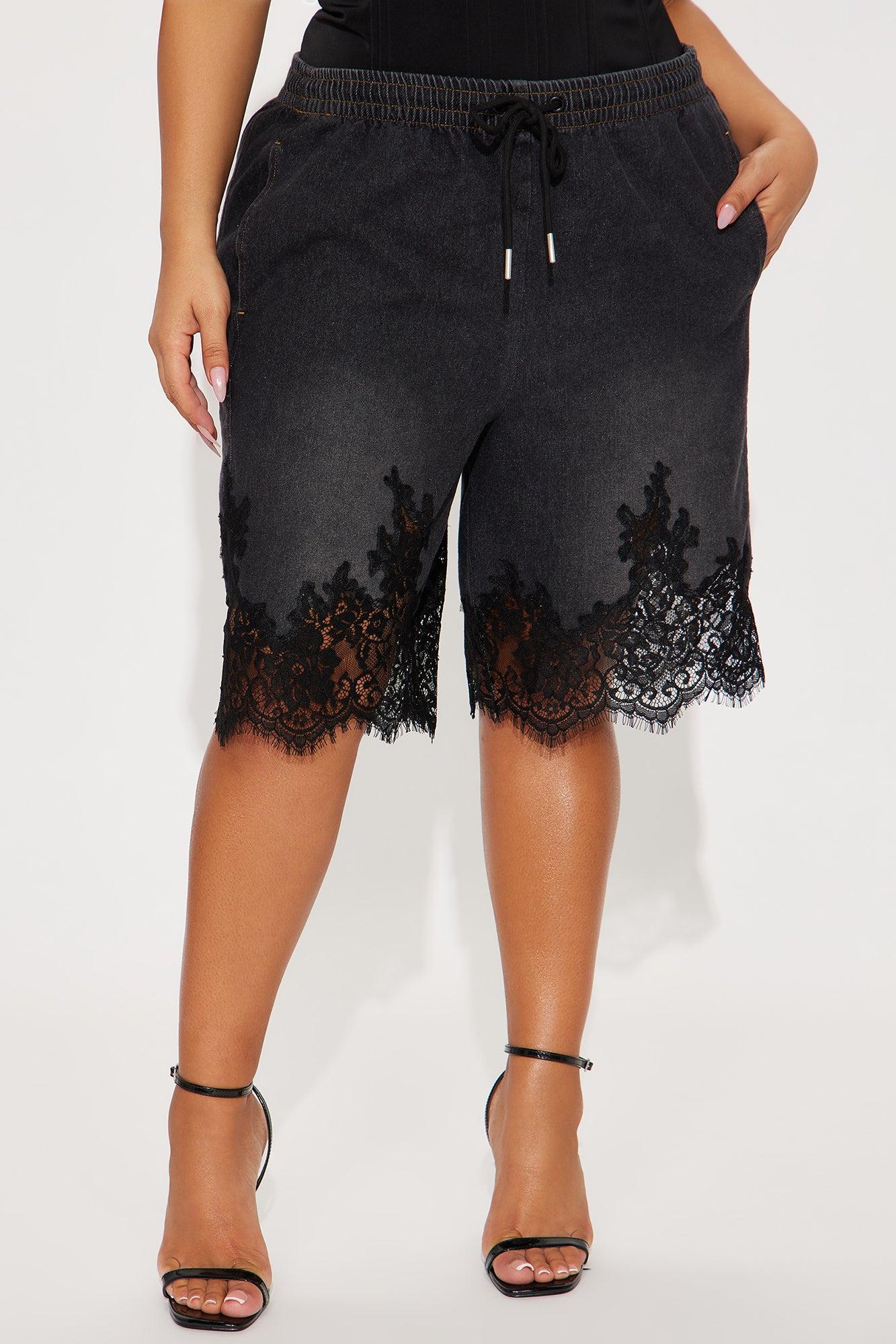 Making Things Happen Lace Trim Denim Jorts - Black Wash Female