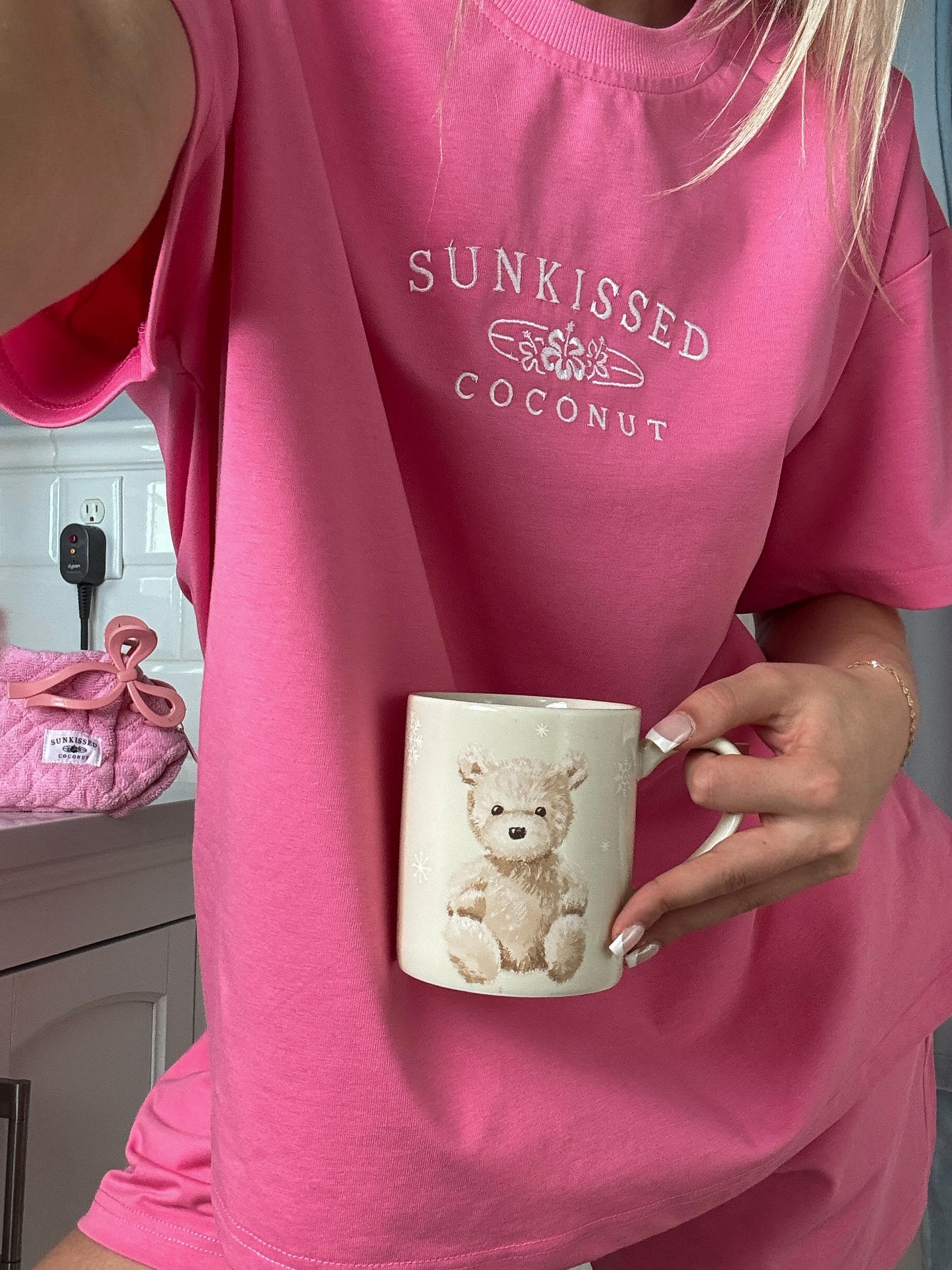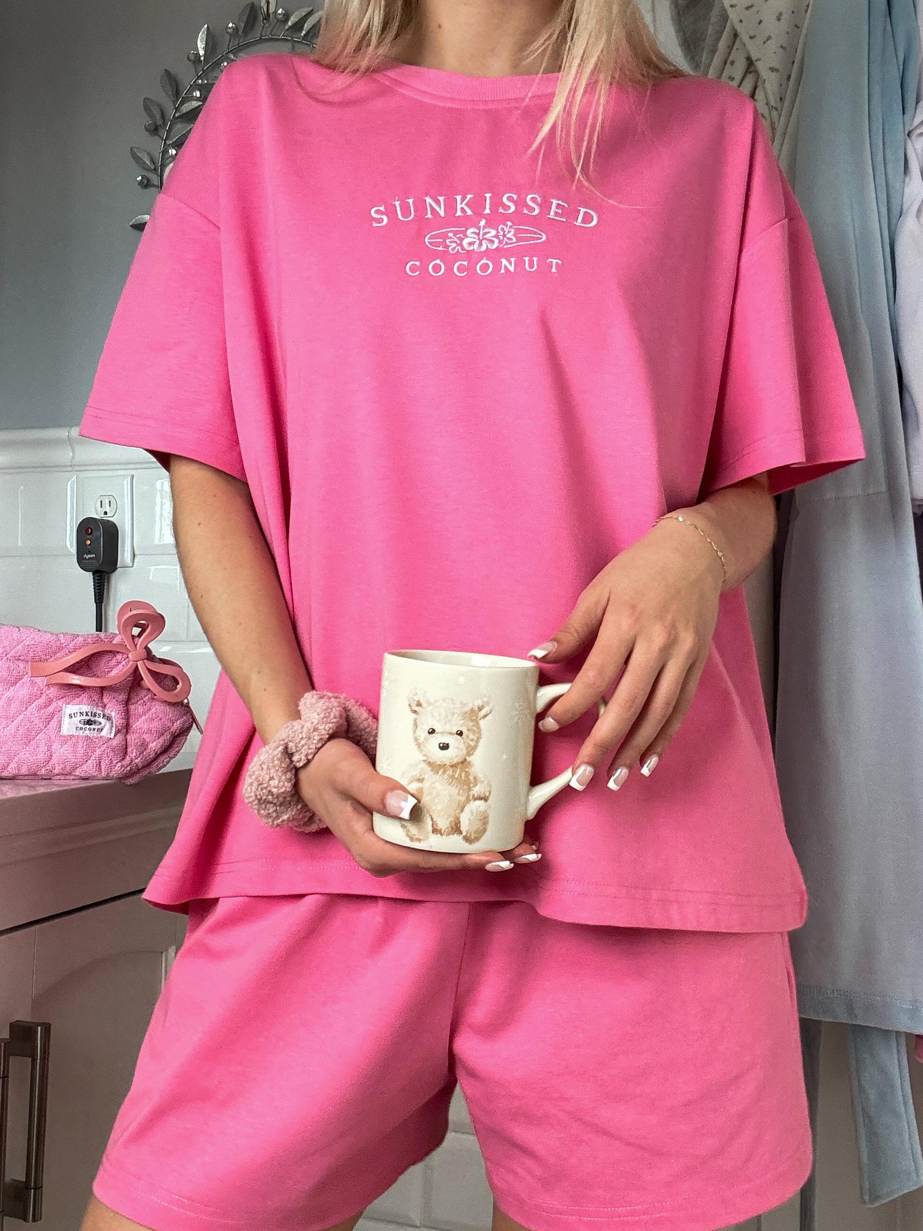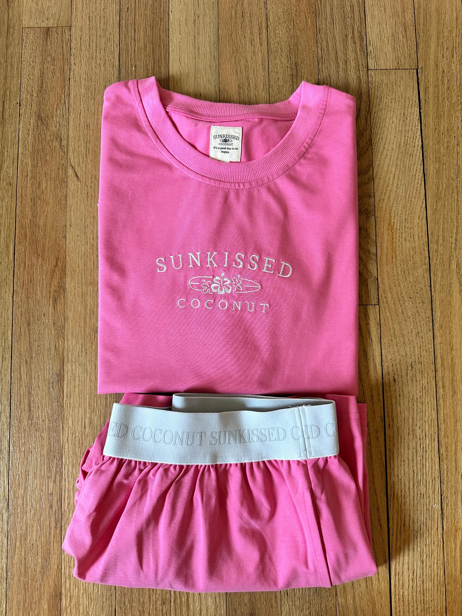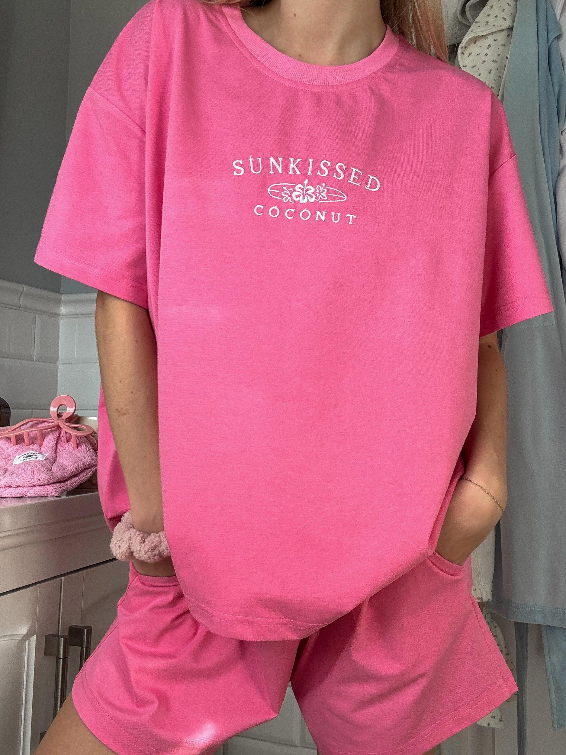 This item is not oversized - unlike our normal full length t-shirts these are made a little shorter that way you can see the shorts! SIZING DETAILS: All Sunkissedcoconut designs are adult unisex sizes For younger teens and children who are on the smaller side, please order a size xs, small, or medium. Do not size up if you are a smaller person it will be too big View size chart below for more details MODEL: Our model is an adult in her mid 20's, not a teenager! She is wearing a size adult large for a comfortable fit. She is 5"3 140 lbs. ☀ Quality: At Sunkissedcoconut our brand believes in using the best materials to create our designs. We use luxury paint, ink, & thread to make our prints. Our designs are meant to last. ☀ Details: Sunkissedcoconut Malibu Pink Basic Watercolor Embroider Tee