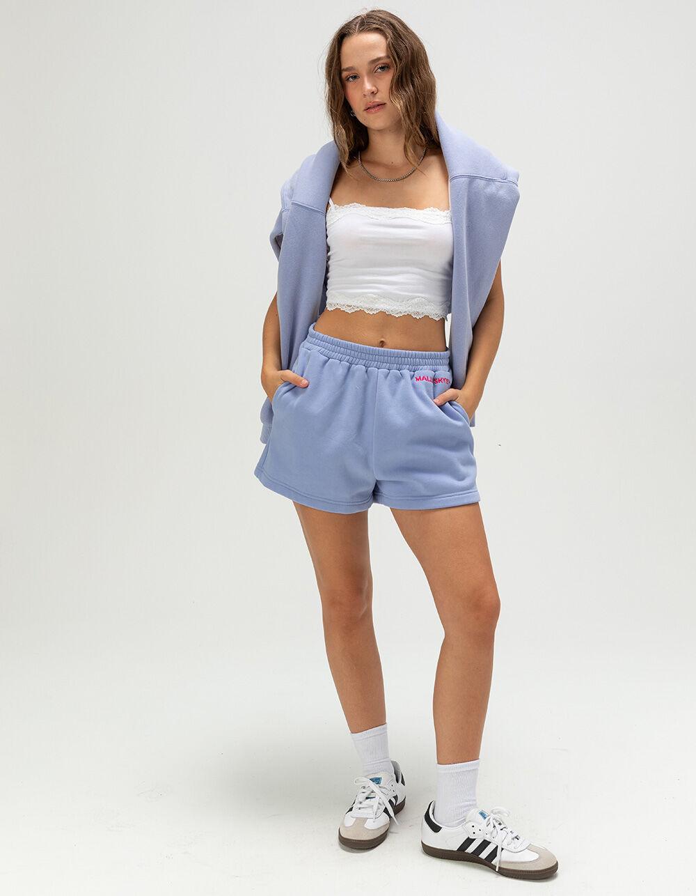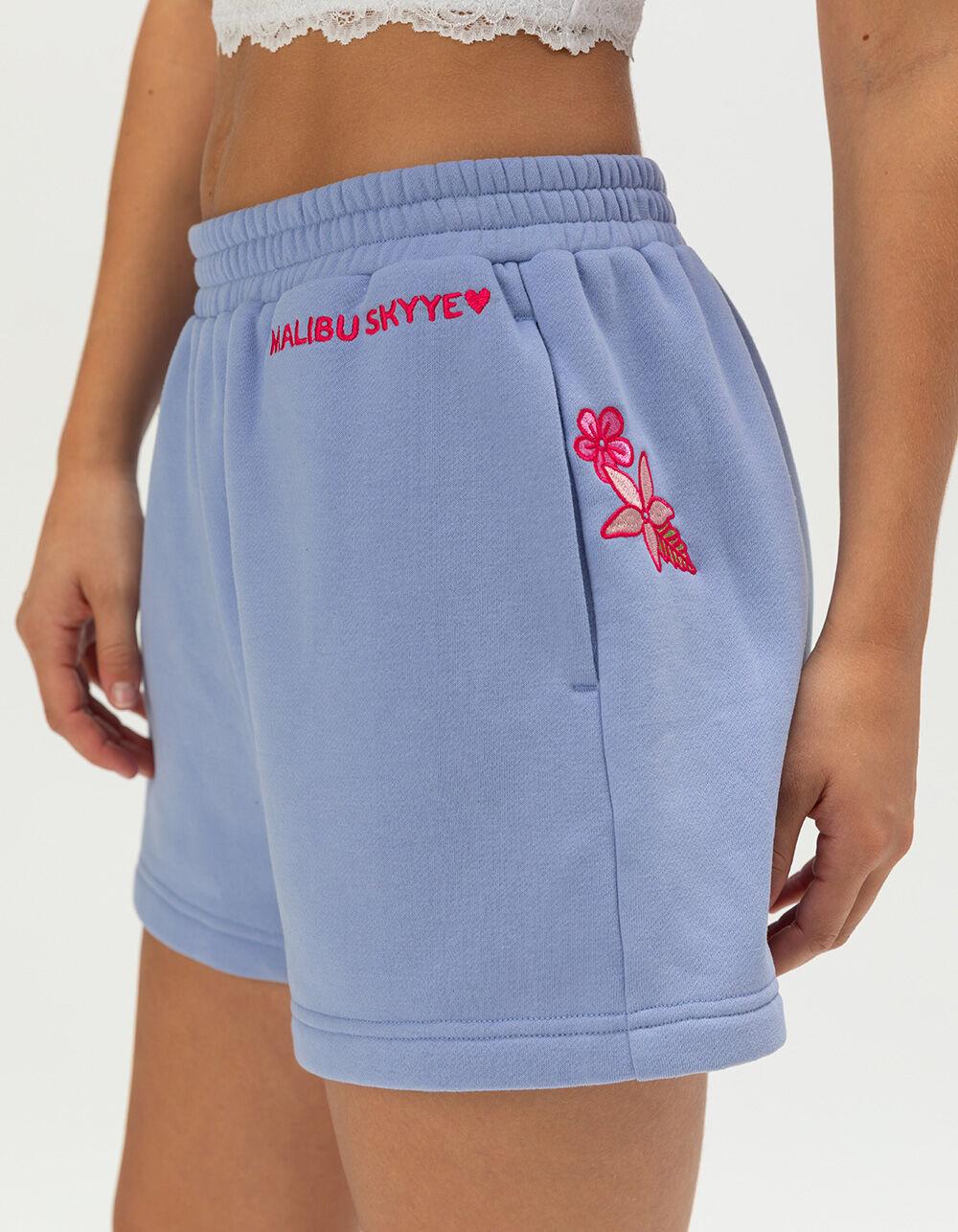 Malibu Skyye Meant To Be Sweat Shorts. The Malibu Skyye Meant To Be Sweat Shorts for women blend relaxed style with a touch of feminine detail. Crafted with a soft fleece lining, they deliver all-day comfort whether you’re lounging at home or heading out for a casual day. An elastic waistband offers a flexible, secure fit, while side seam pockets bring functional convenience. The left leg is accented with Malibu Skyye embroidery and a delicate floral design, adding a charming, eye-catching touch. With an approximate 2" inseam, these shorts offer an easygoing yet flattering look, perfect for warm, carefree days. 50% Cotton 49.8% Polyester 0.2% Viscose. Machine wash. Imported.