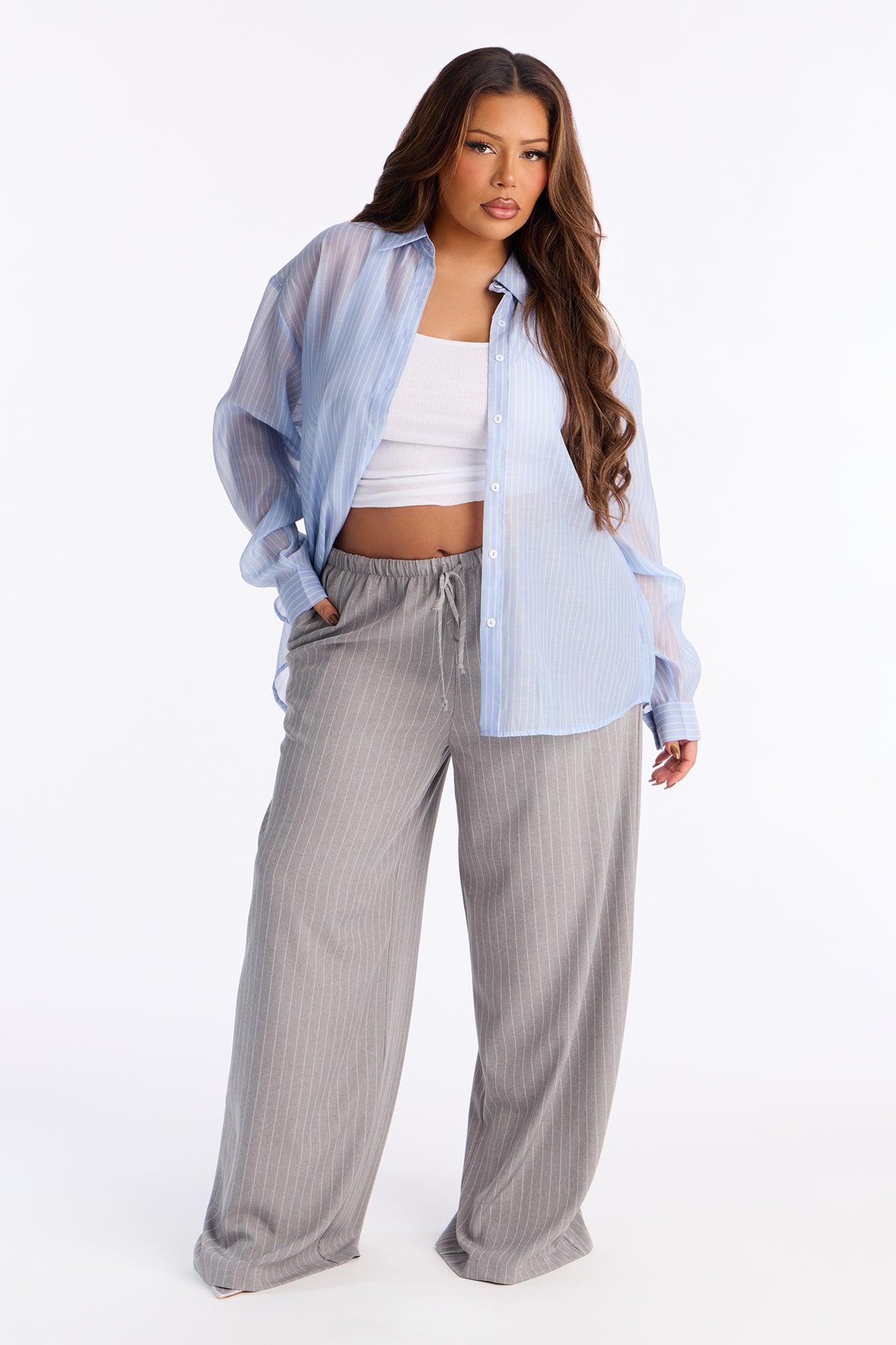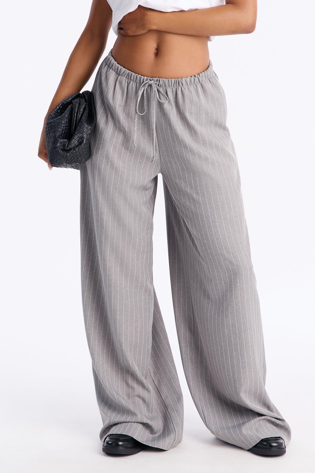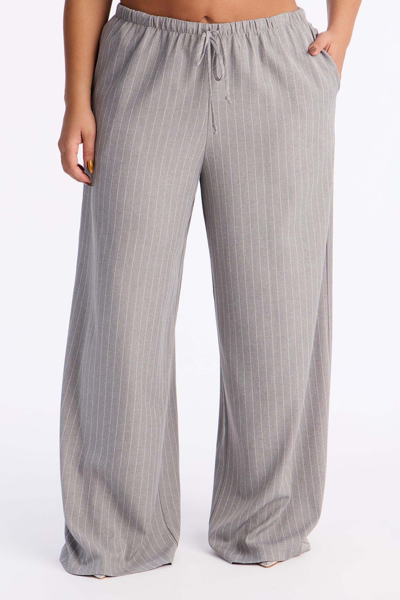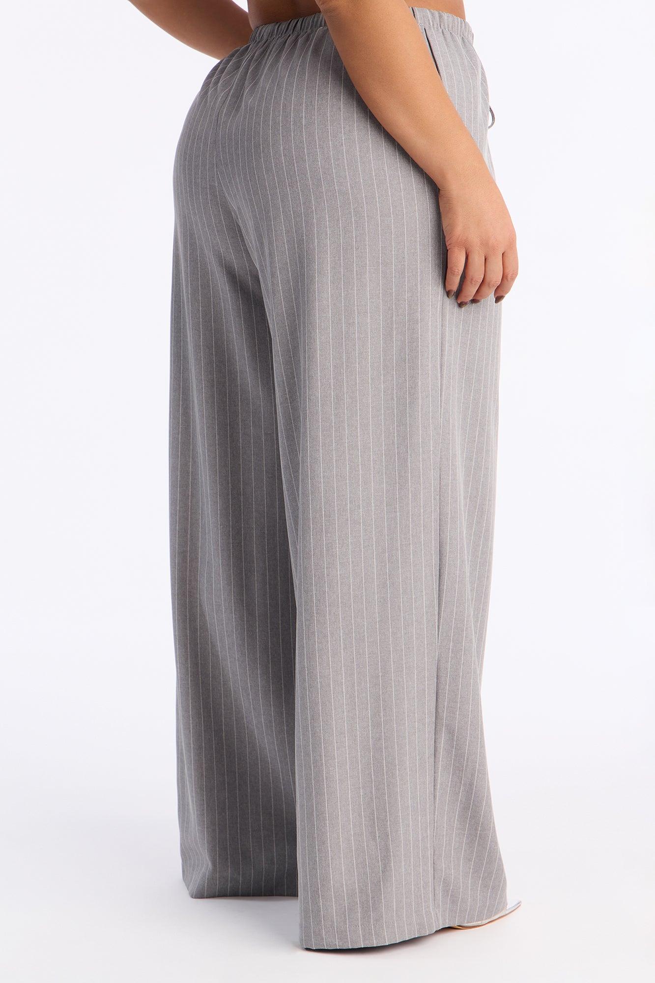 Mallory Pinstripe Easy Pull On Wide Leg Pant 33″ - Grey Female
