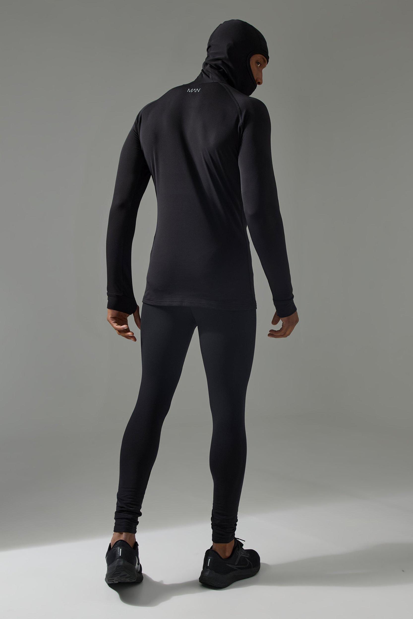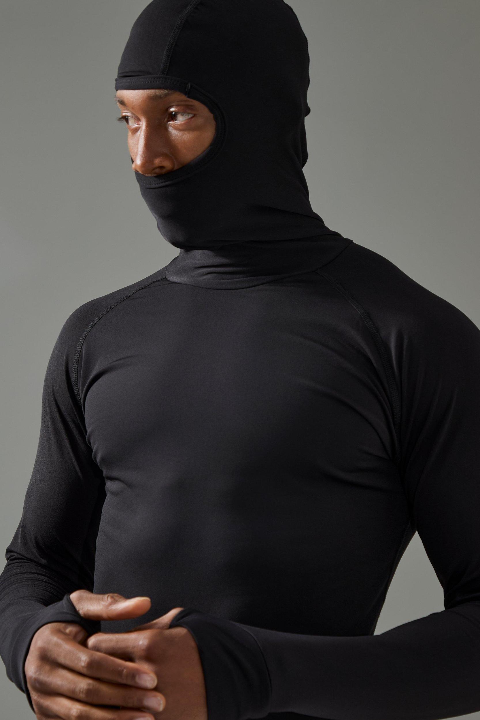 Mens Black Man Active Long Sleeved Head Cover Base Layer - Work out in style This collection of gym t-shirts is a must have in your workout wardrobe, perfect for the gym goer to the outdoor adventurer. Each piece is made from fabric that guarantees maximum comfort and performance during the most intense workouts. These gym t-shirts come in a variety of colours and patterns, from bold and eye-catching to cool and tonal, making finding the perfect gym top easy for you. Team with a pair of your favourite gym joggers and gym trainers.