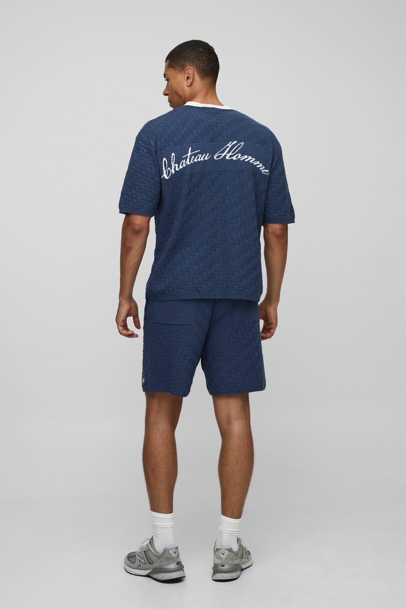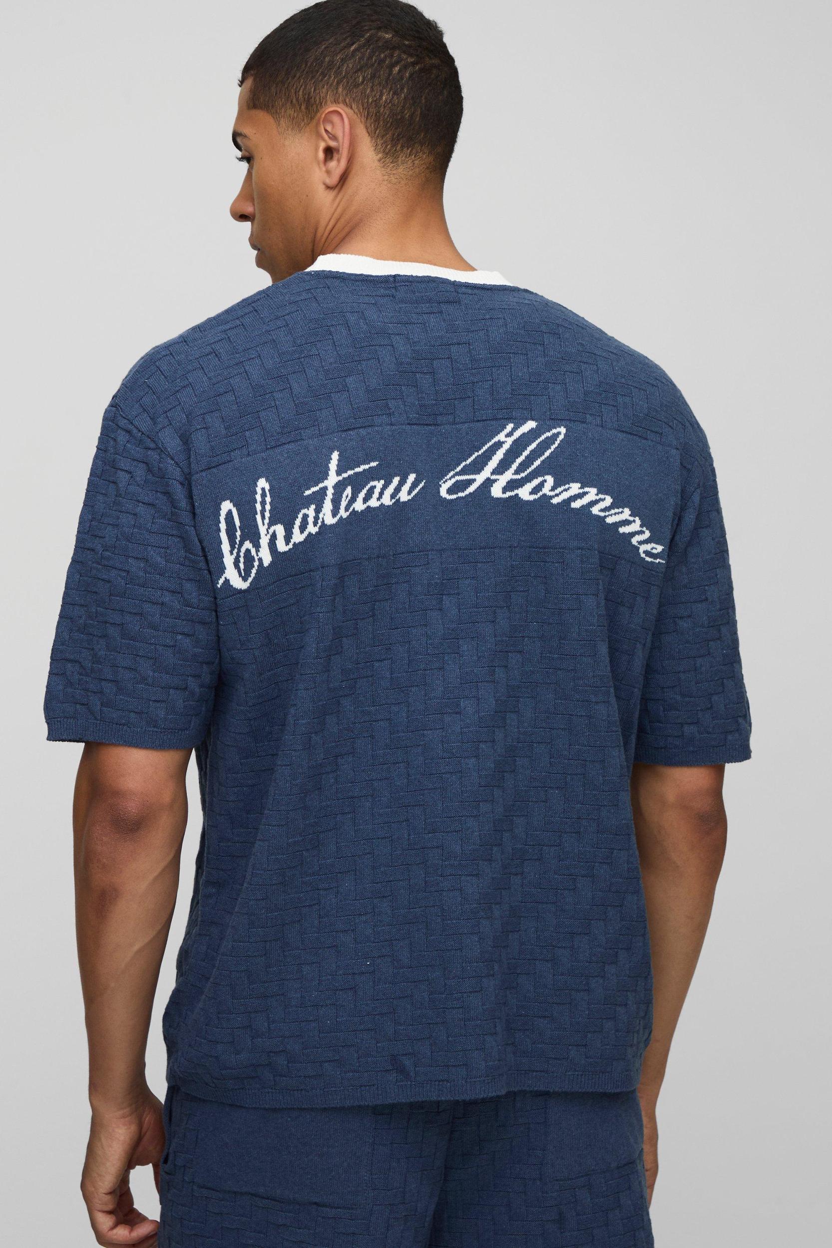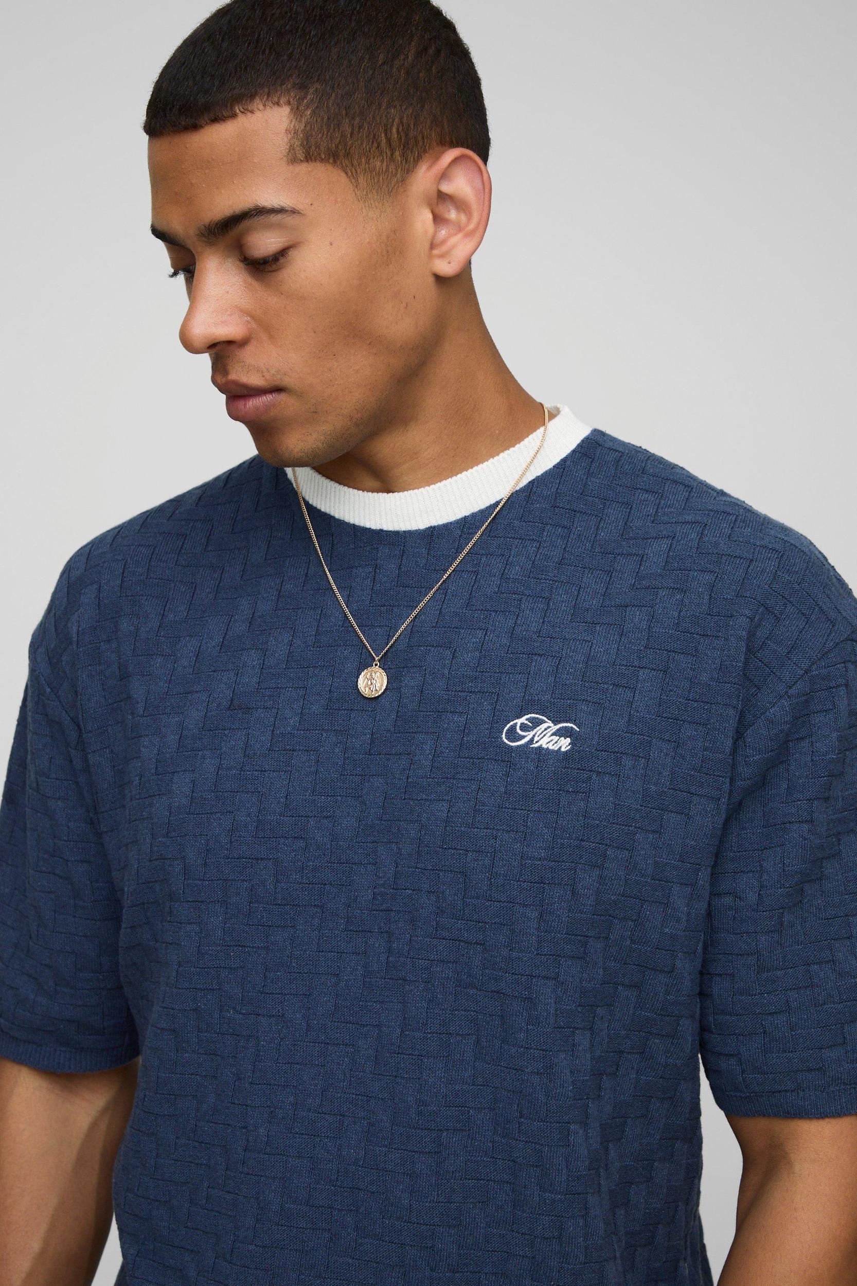 MAN Boxy Embroidered Crosshatch Knitted T-Shirt | boohooMAN USA