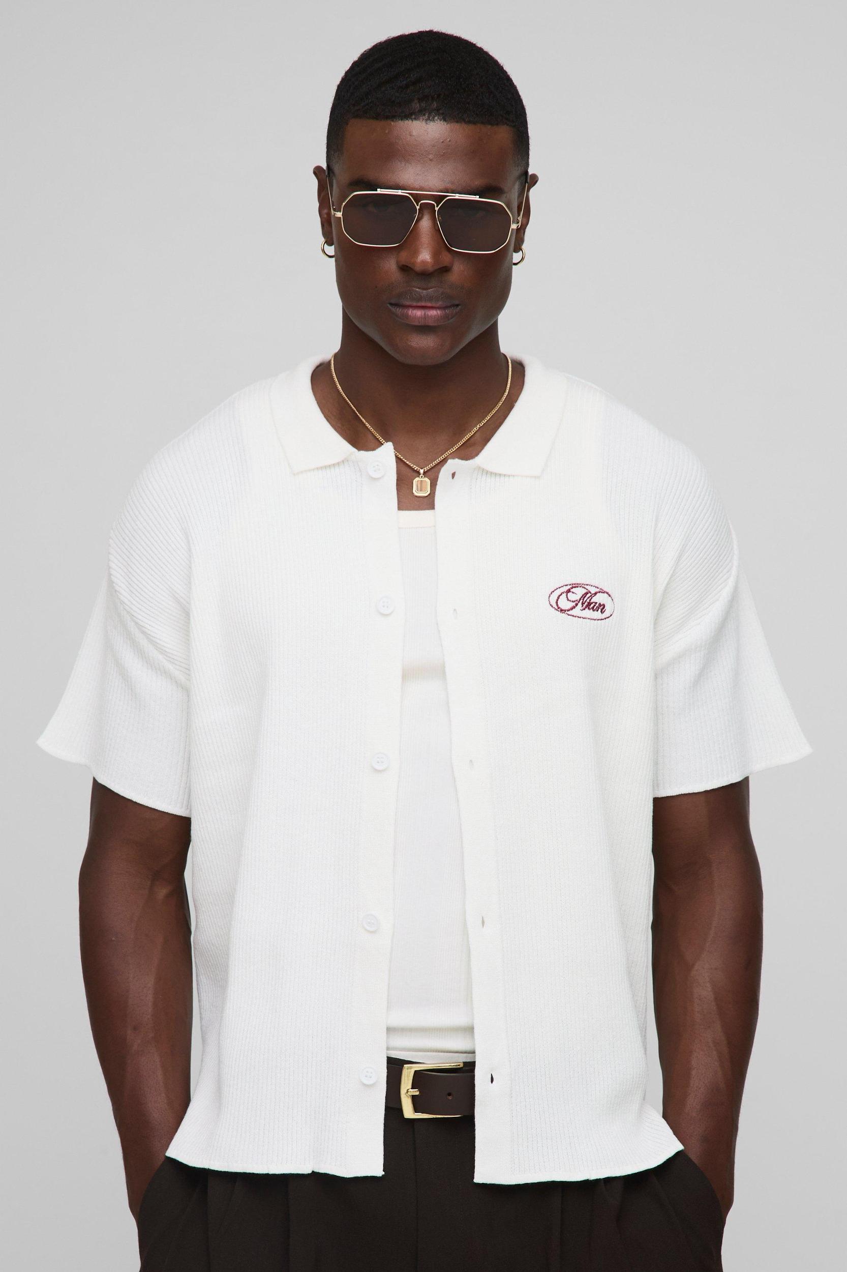 MAN Boxy Rib Knitted Shirt | boohooMAN USA