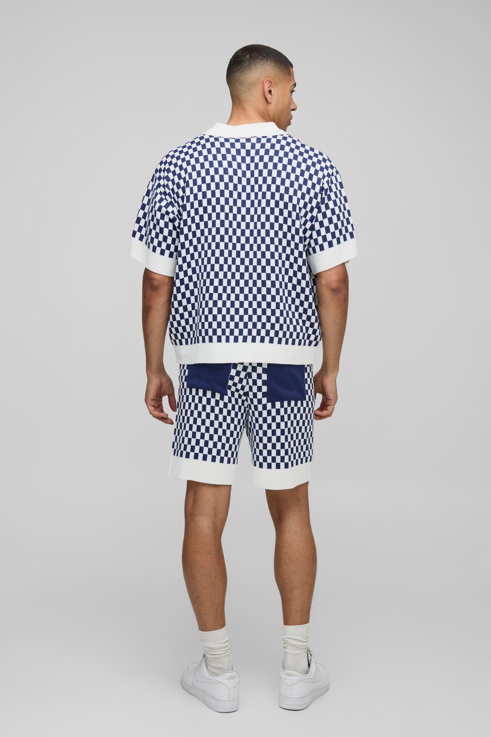 MAN Oversized Boxy Jacquard Plaid Knitted Polo & Relaxed Short Set | boohooMAN USA