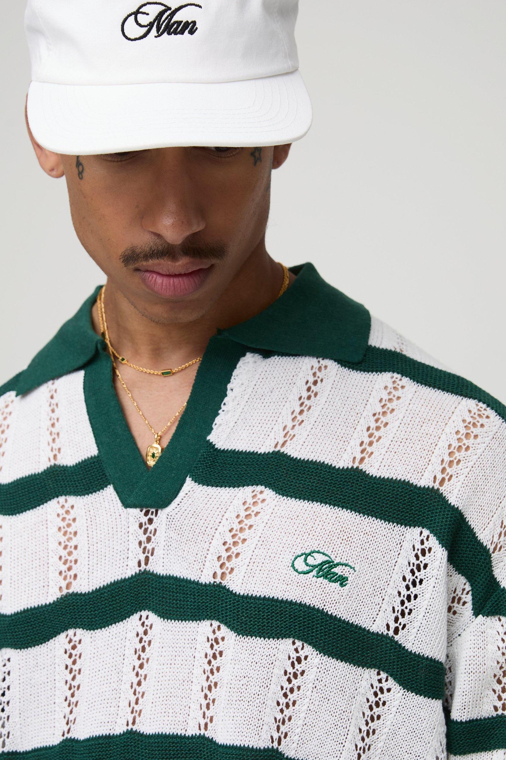 MAN Oversized Boxy Stripe Embroidered Knitted Polo | boohooMAN USA
