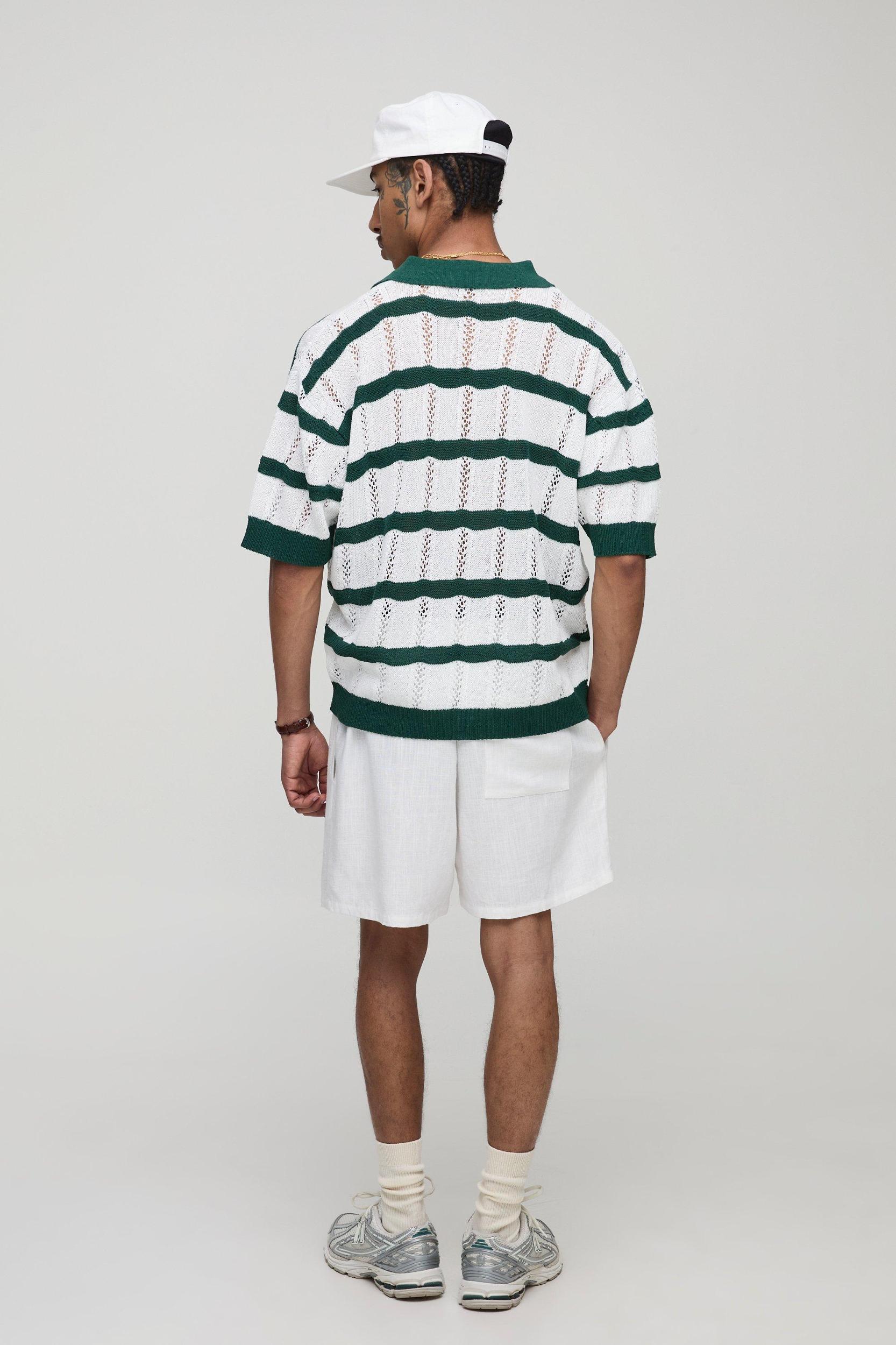 MAN Oversized Boxy Stripe Embroidered Knitted Polo | boohooMAN USA Product Image