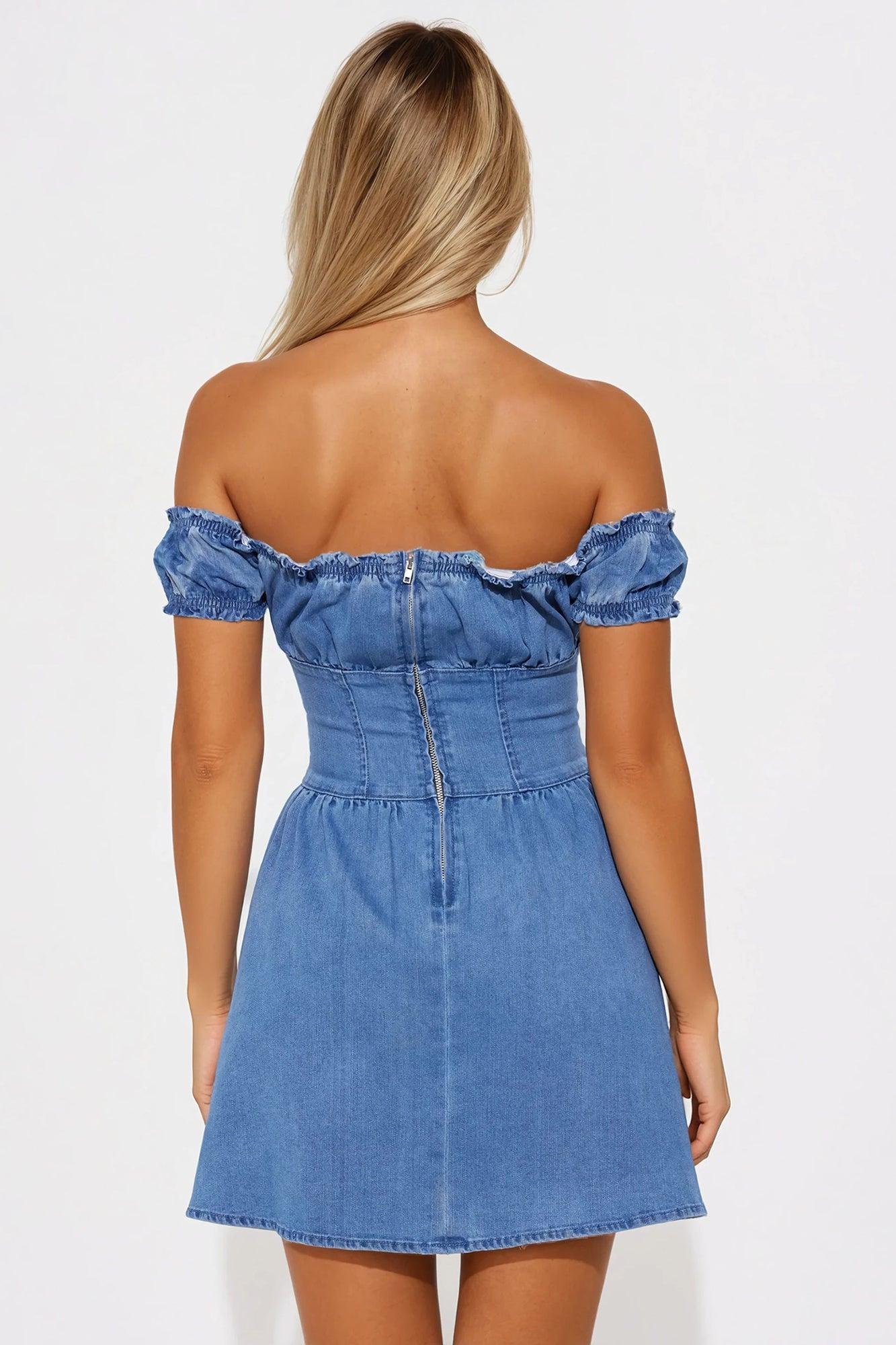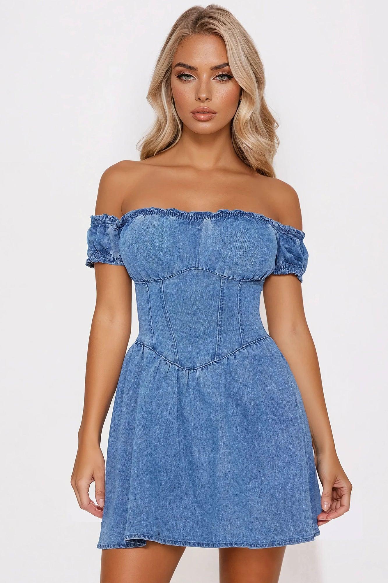 Mandy Denim Corset Mirco Mini Dress - Medium Wash