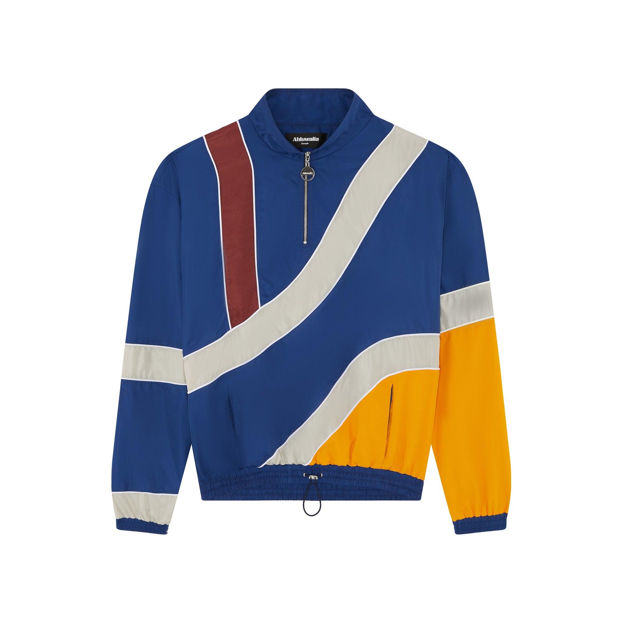 Description: The Mango track top features a zip neck, drawcord hemline, kangaroo pocket, and contrast piped panel seams. Repurposed materials have been combined to construct the top's shell, with a full inner lining. Sizing: Click here for size guide. Model wears size medium. Height 188cm / 6'2'' For further sizing assistance please contact us on