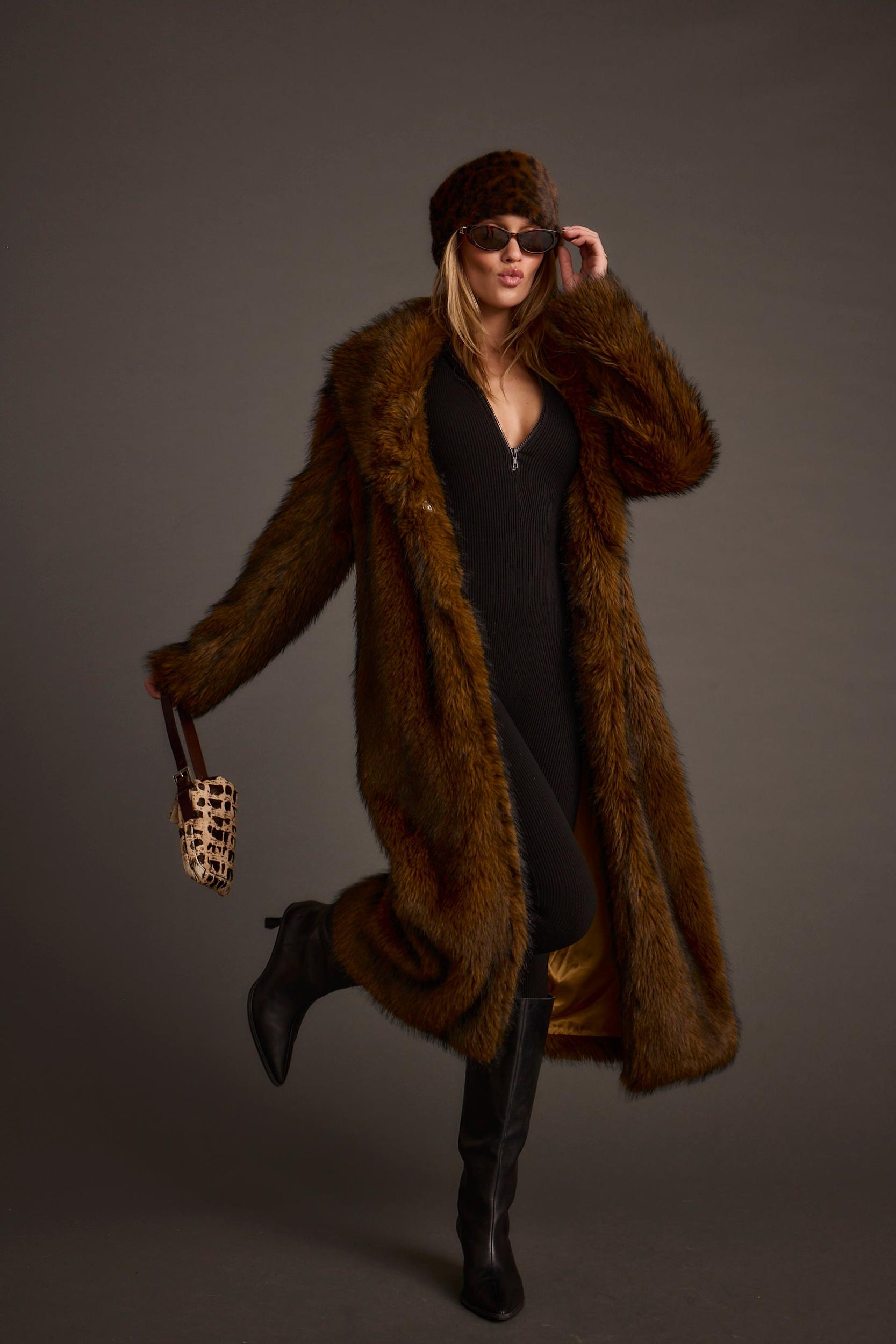 Manhattan Brown Faux Fur Coat