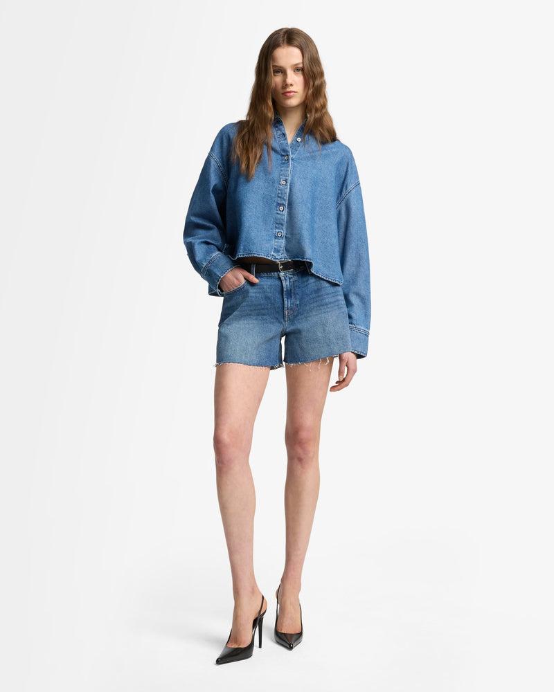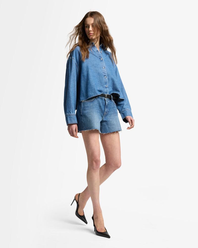 Fits like: A mid rise short with an easy-going, relaxed fit and cuffed hems for a versatile, vintage feel.Feels like: Rigid denim that holds its shape while evolving into a softer, more lived-in fit over time. The Details: Medium Indigo Wash Whiskering and fading along the hips and thigh Zip fly with button closure Sig