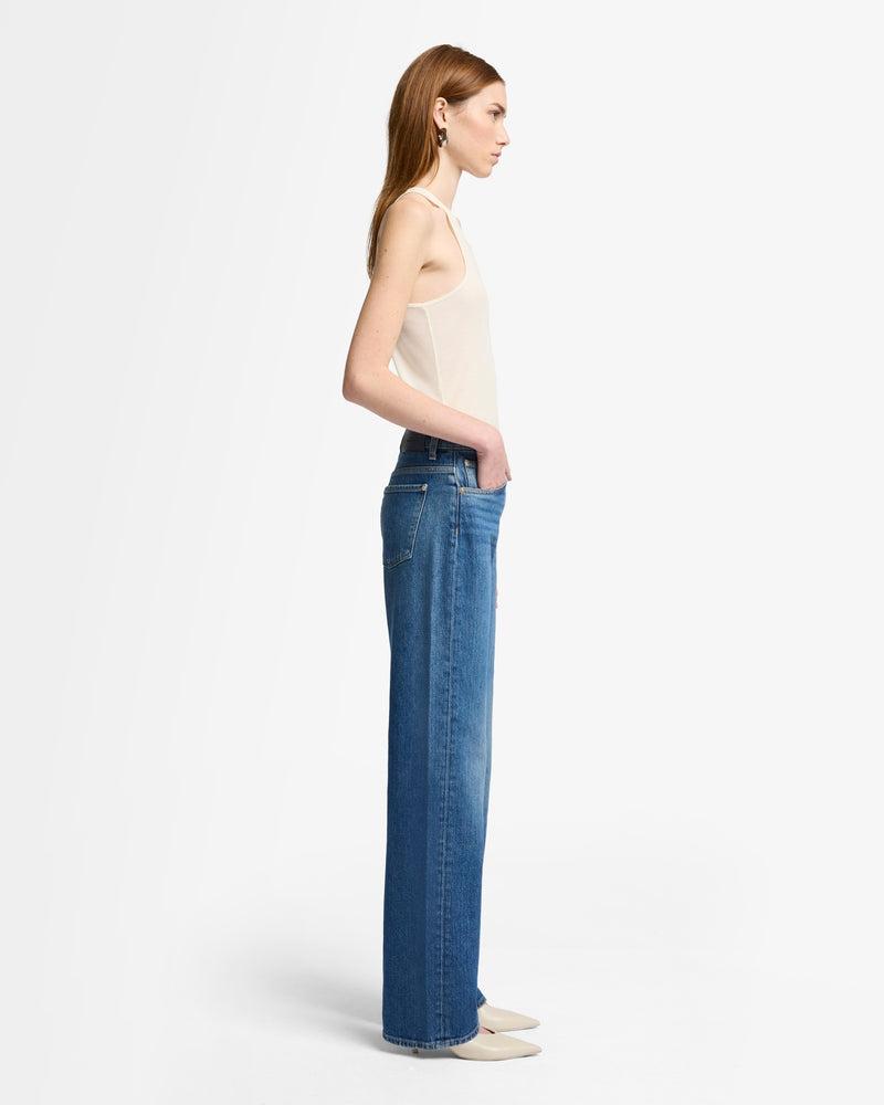 Fits like: A high-rise straight-leg fit with a full-length silhouette that offers a classic, flattering shape. Designed to sit at the waist and fall effortlessly through the legs for an elongating look. Feels like: Classic rigid denim that's structured and durable, made to hold its shape while softening over time for t