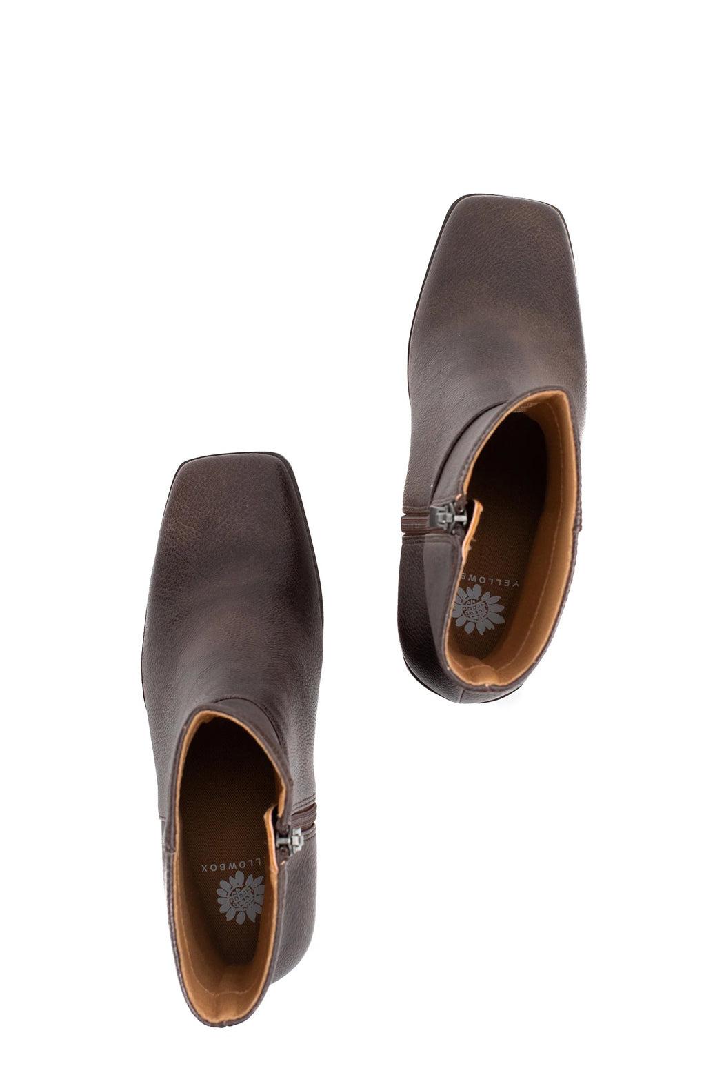 An elevated take on the classic ankle bootie, the Maora Heeled Boot is a higher ankle boot in a textured chocolate brown faux leather featuring a square toe and block heel. Perfect for pairing with any of your jeans or trousers.