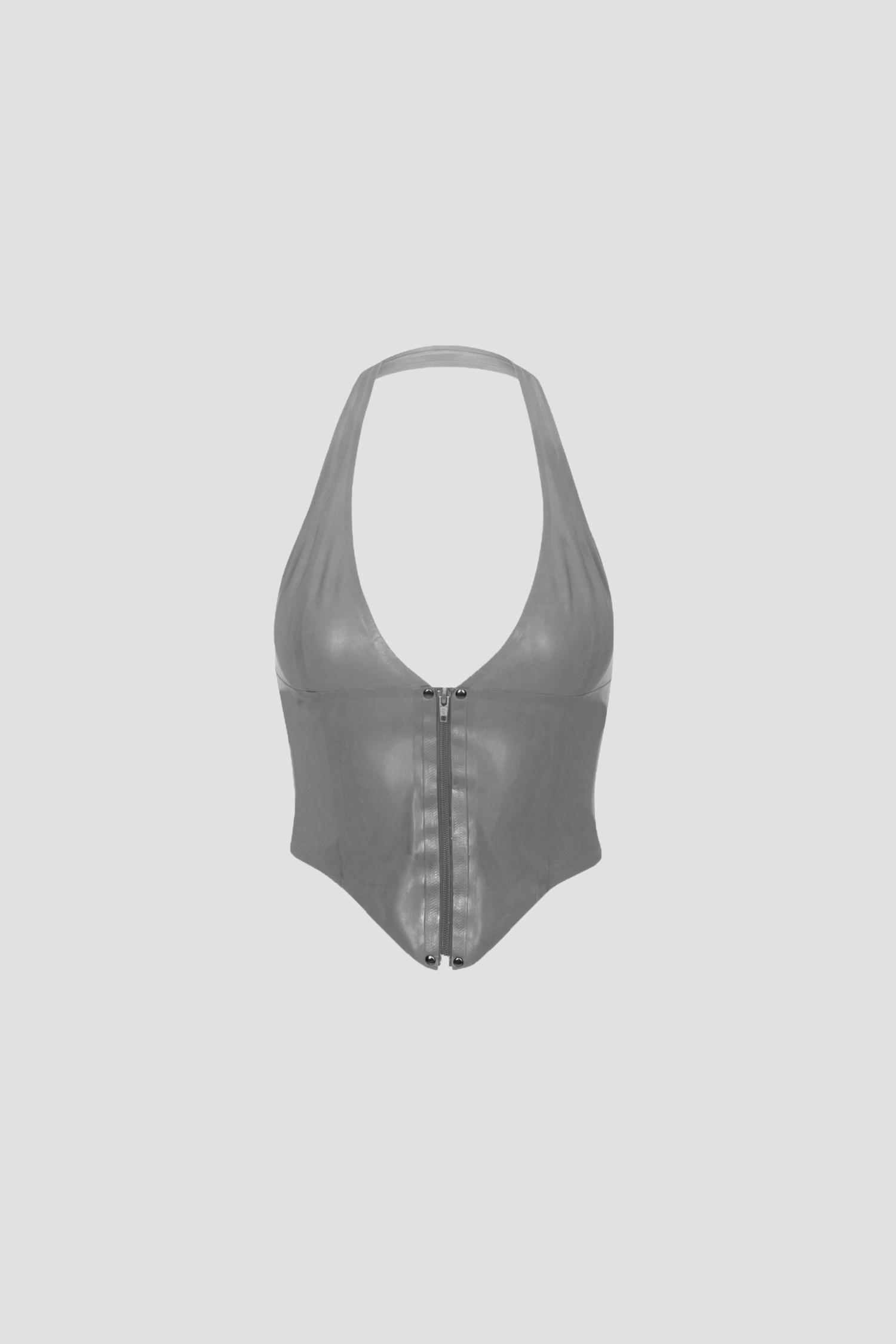 Look no further, our Mara corset is here and now in Dark Grey latex. This halter top corset features a jaw-dropping plunging neckline with a zipper closure up the front. She's the one.