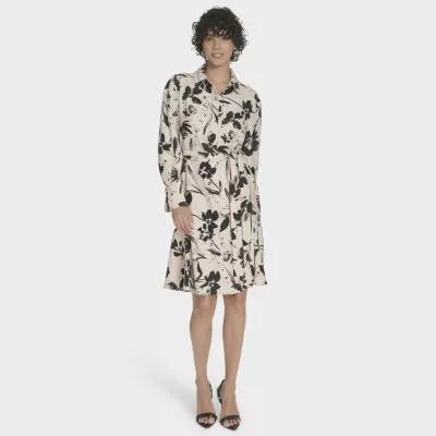 Marc New York Womens Belted Long Sleeve Floral Shirt Dress