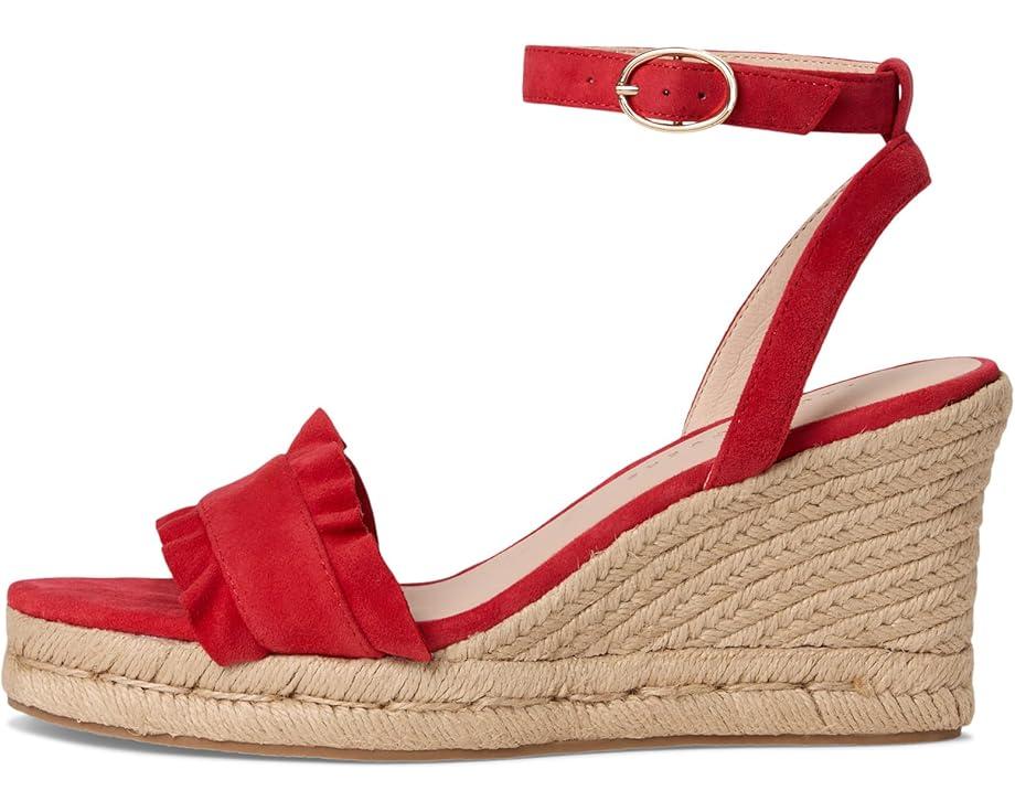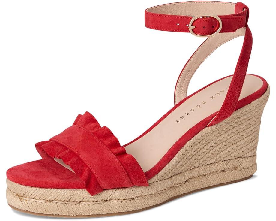 Whimsical charm, effortless chic: The Rozette Ruffle Wedge by Jack Rogers® is the perfect blend of playful and polished. Featuring a premium suede leather upper, lining, and insole for a luxe feel, this chic wedge combines comfort with flair. The ruffled design adds a touch of whimsy, while the sturdy rubber outsole ensures a confident stride. An adjustable ankle buckle strap provides a secure fit, and the open-toe silhouette lets your pedicure shine. Elevated by a versatile wedge platform heel, these shoes are perfect for brunch dates, outdoor soirées, or casual office days.