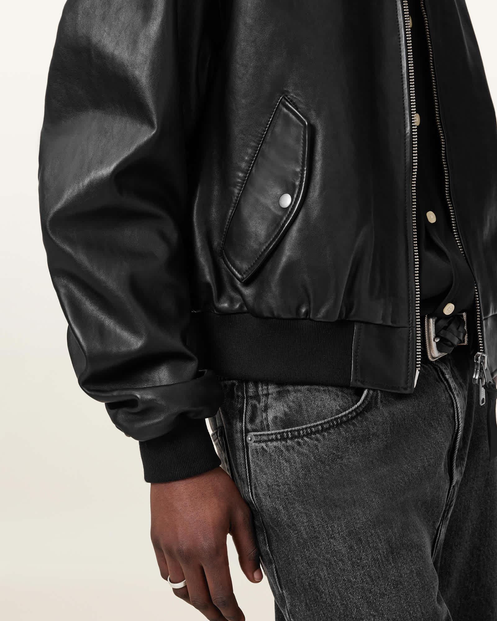 Marco Oversized Leather Bomber Jacket Black | ALLSAINTS US