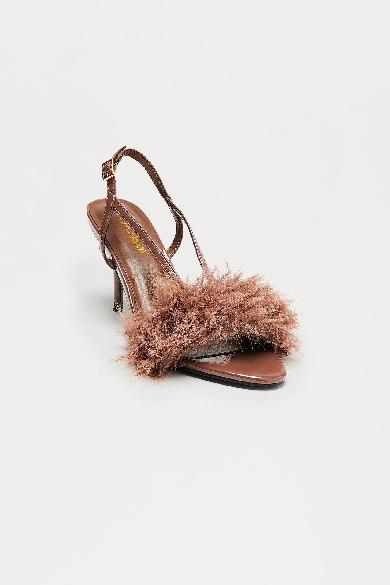 Mareem Faux Fur Slingback Heels - Chocolate Female